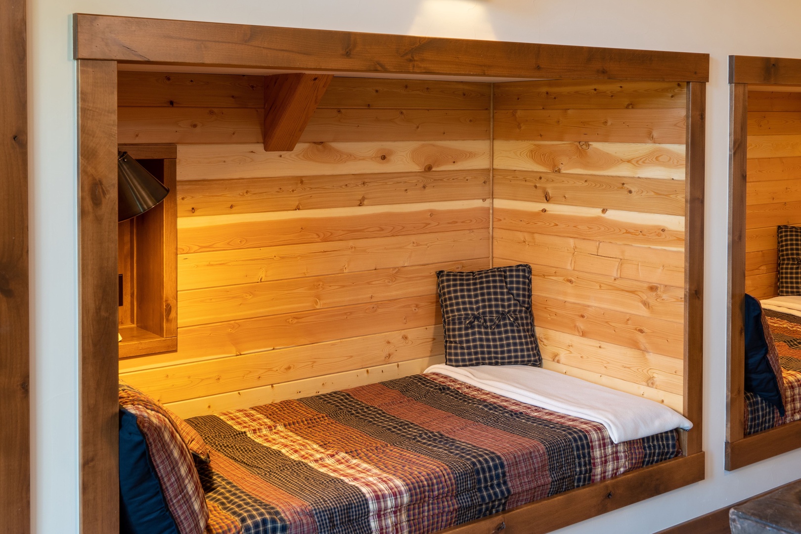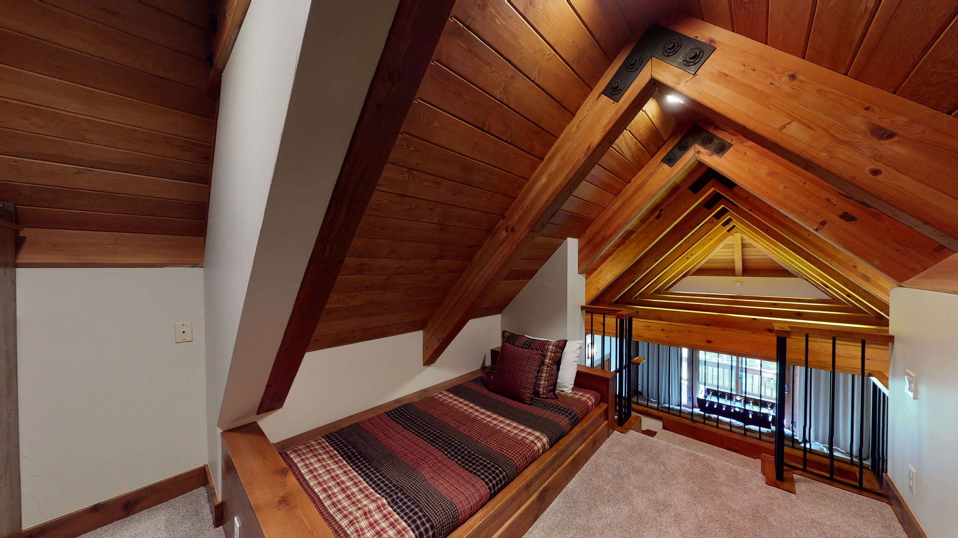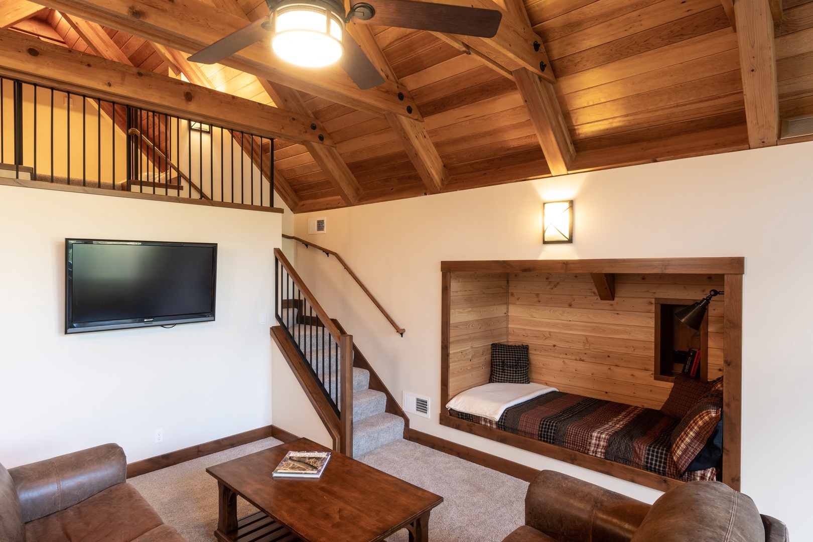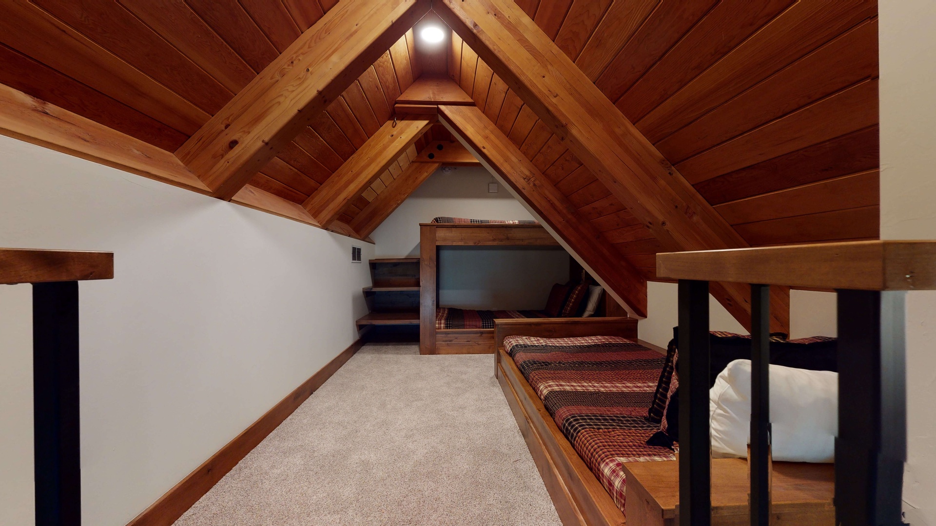 • Children will find plenty of space to play and sleep in their own upstairs “bunk room” and sleeping loft, complete with entertainment area, Foosball table, 6 built-in bunk beds, and adjacent bathroom