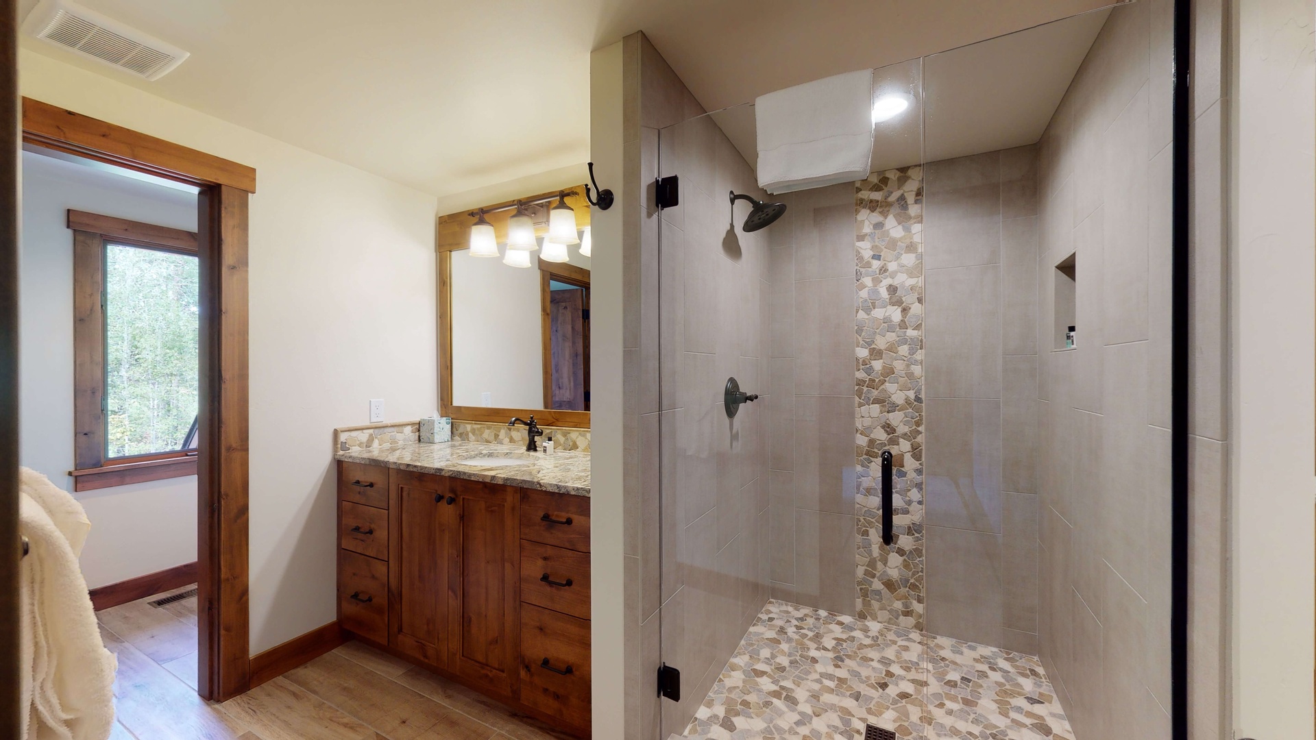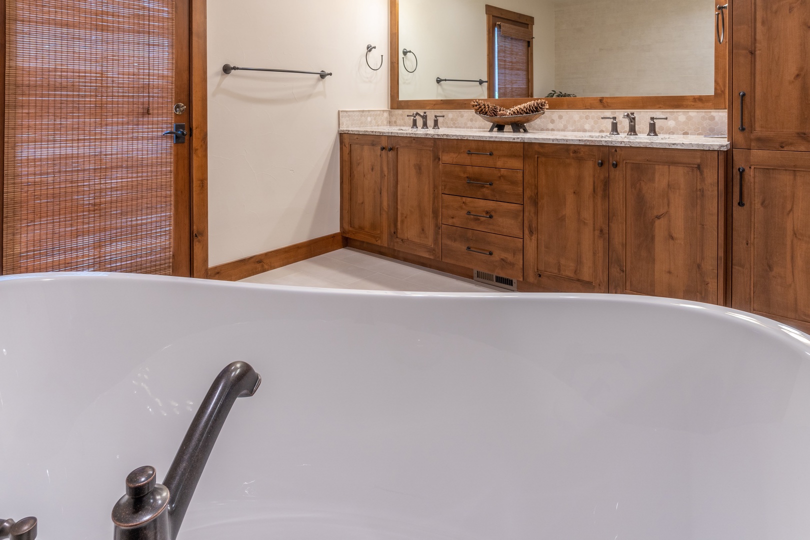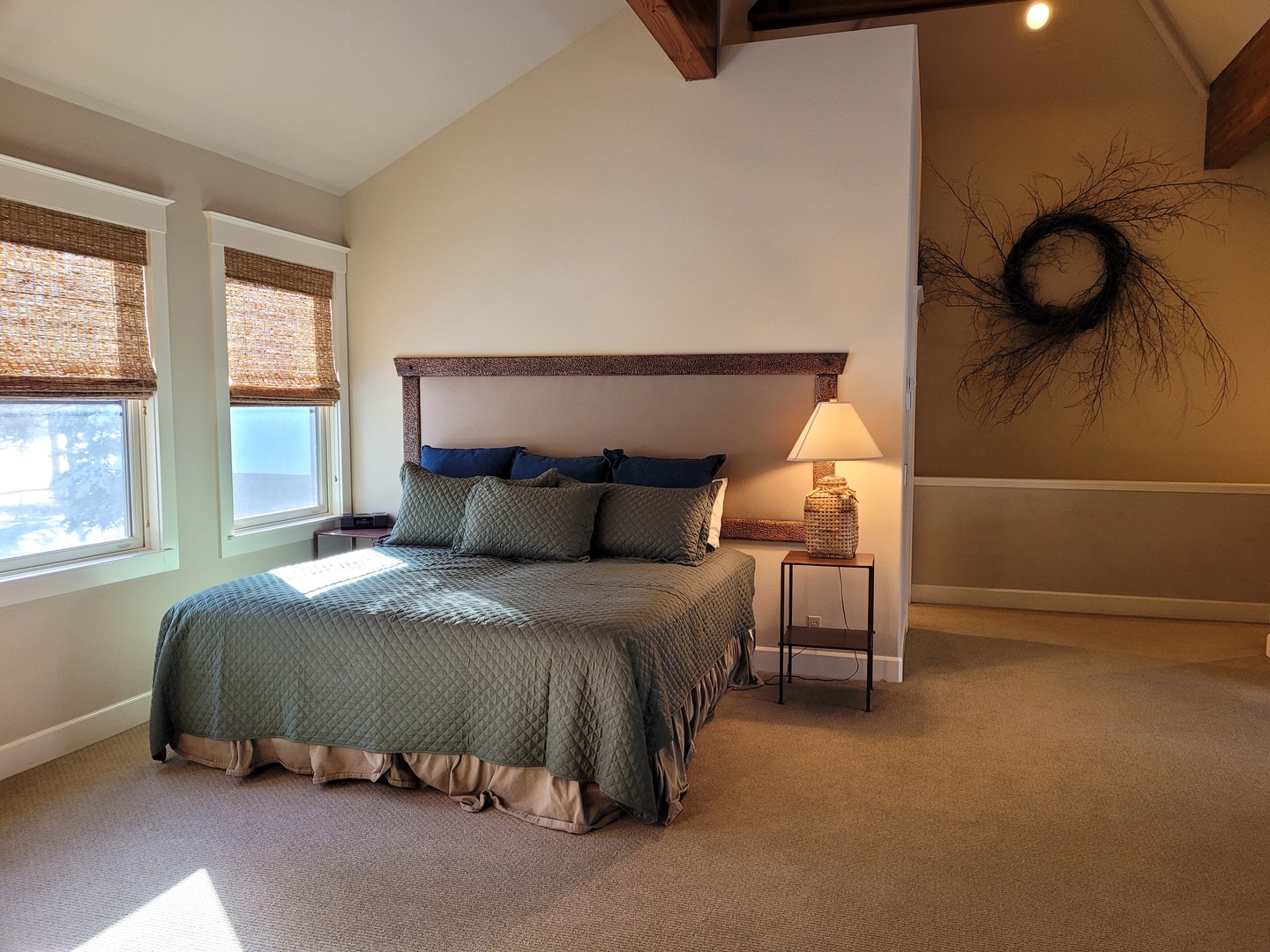 • Master bedroom downstairs with King bed and large attached bathroom with a soaking tub and dual-head shower
