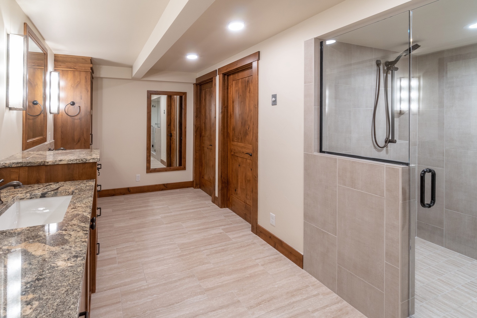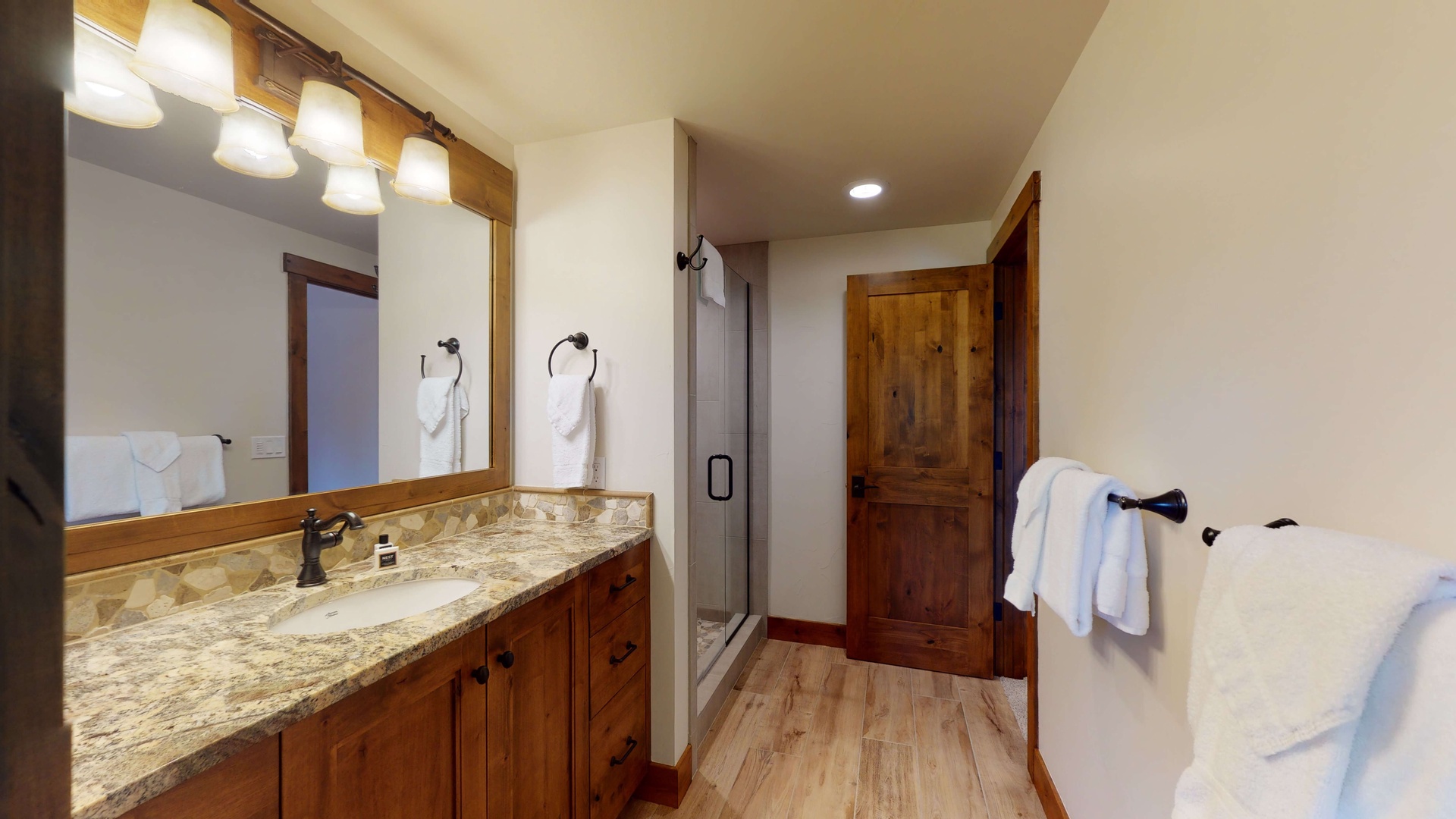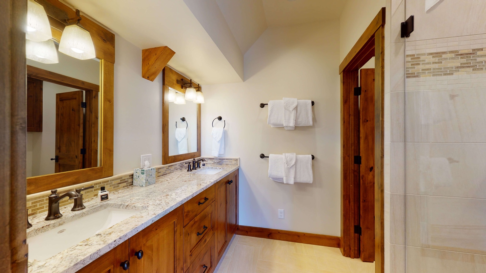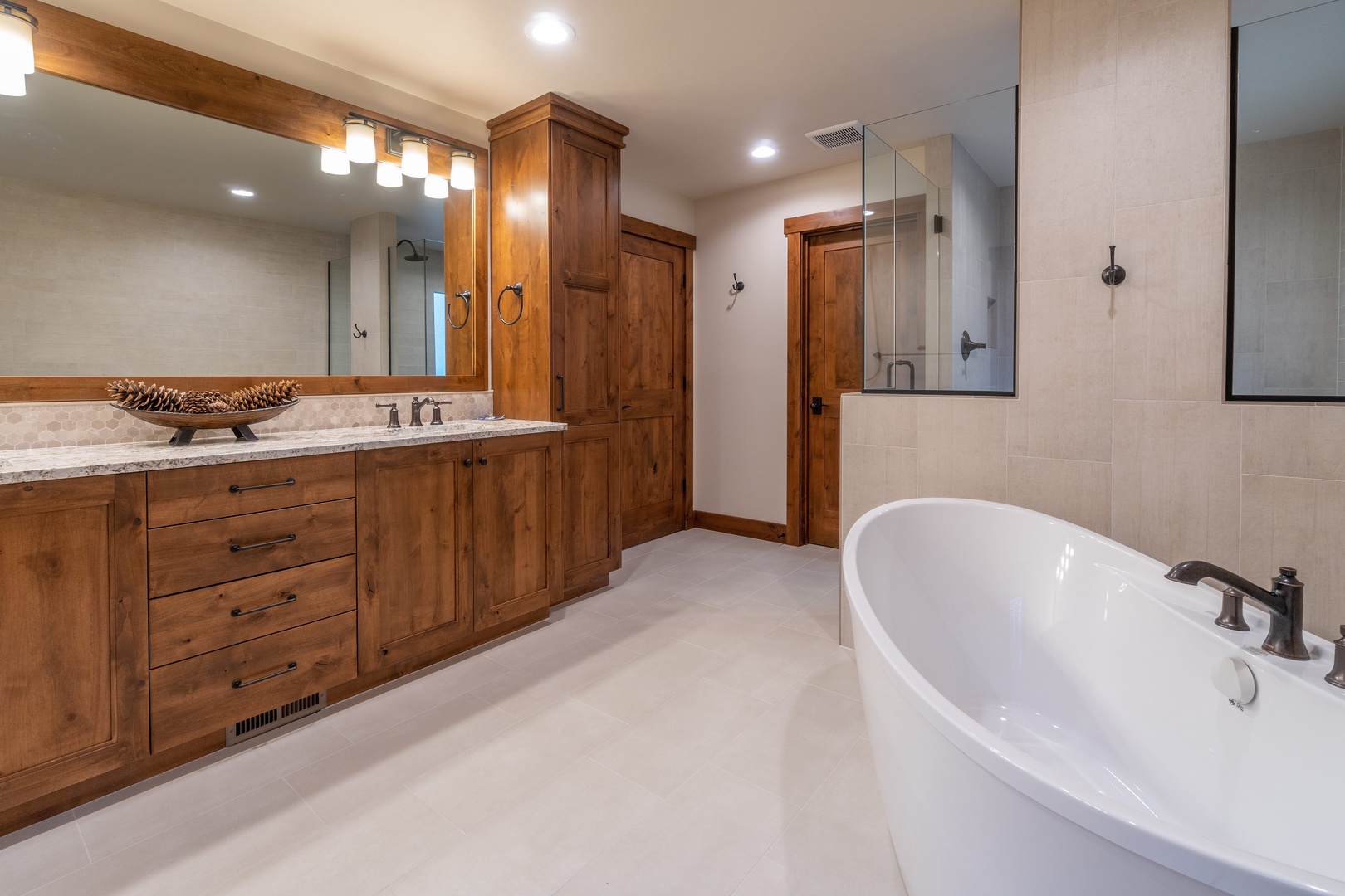 • Master bedroom downstairs with King bed and large attached bathroom with a soaking tub and dual-head shower
