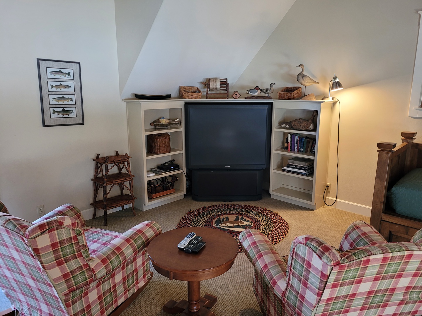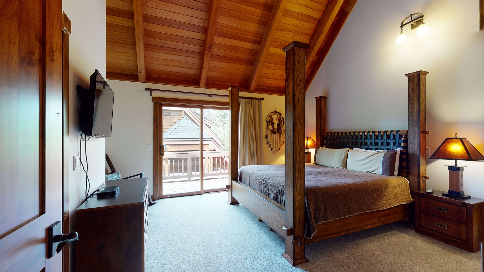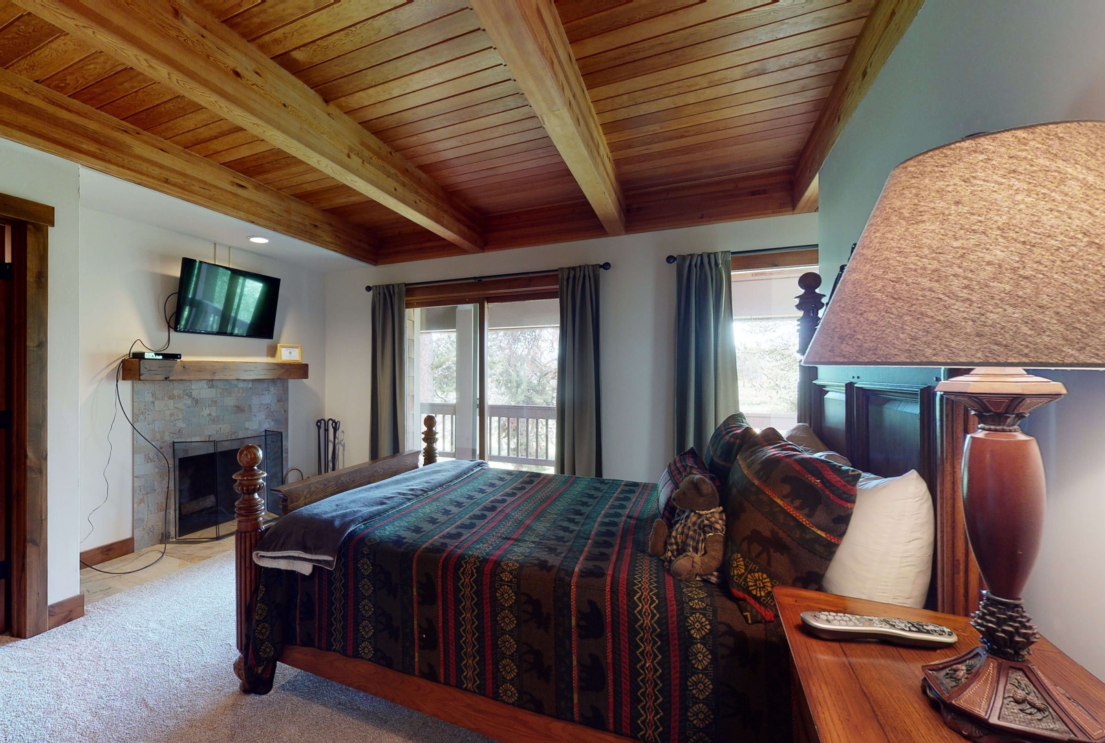 • One master Queen ensuite upstairs, featuring wood-burning stone fireplace