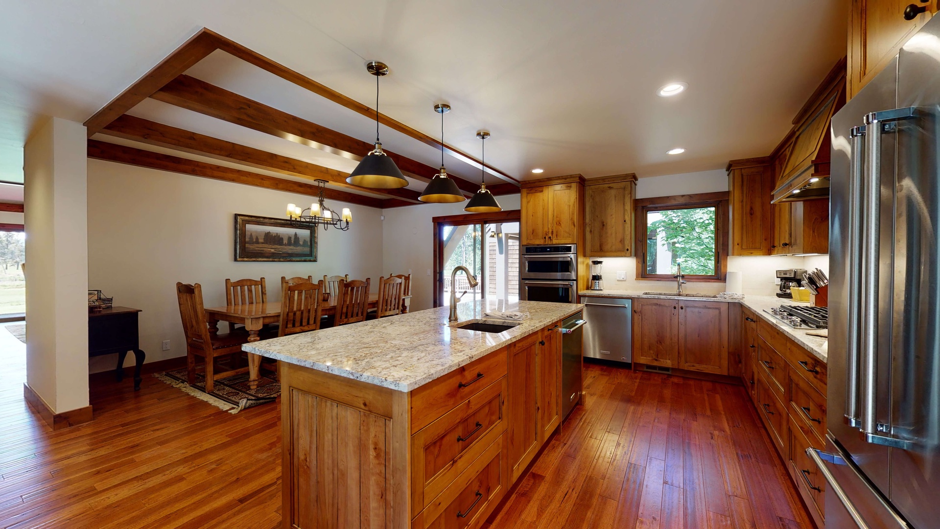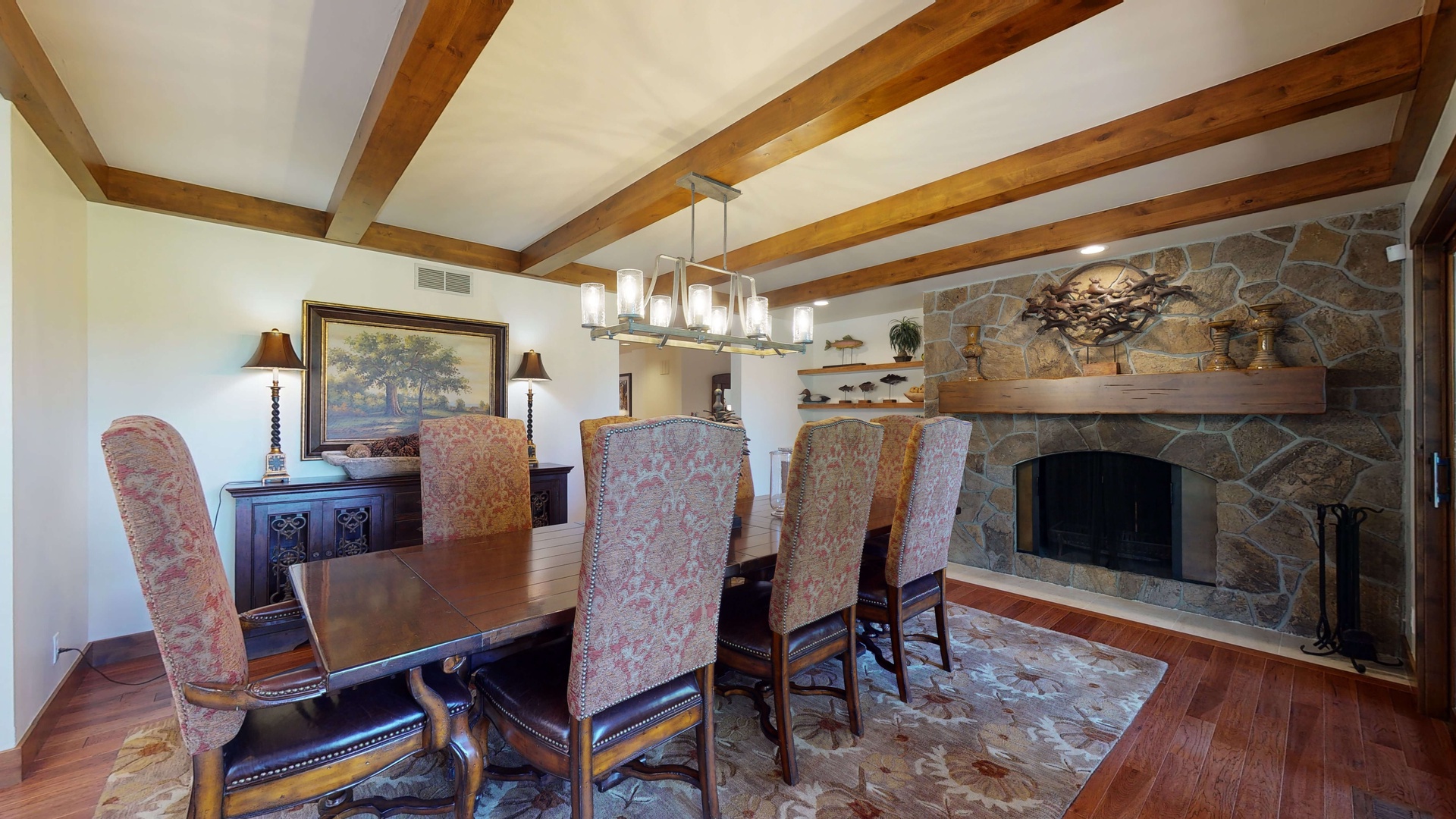 10 Fairway Lane is the perfect home for entertaining. There are two dining rooms, each with seating for eight – an informal one in the kitchen for casual dining (which has additional seating for 6 along the center island and breakfast nook) and a separate, more formal dining room with a wood-burning stone fireplace