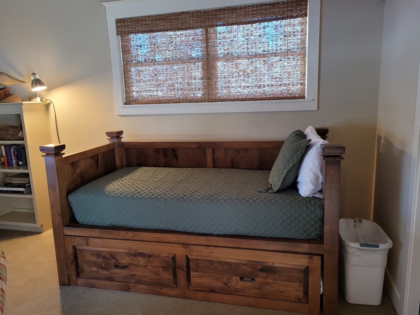 • Unique to this home, there is an 800 sq. ft. guest cottage, with a King bed and day-bed with trundle. Guests will appreciate a nicely appointed kitchenette – with refrigerator and a dining table that seats four – and entertainment area. Perfect for in-laws, a young family that needs a little extra space, a bridal suite or a guest who just wants extra privacy