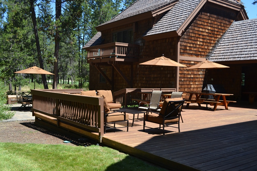 With Sunriver’s beautiful weather, entertain on the spacious main deck overlooking the 8th green, with seating for 20+ people