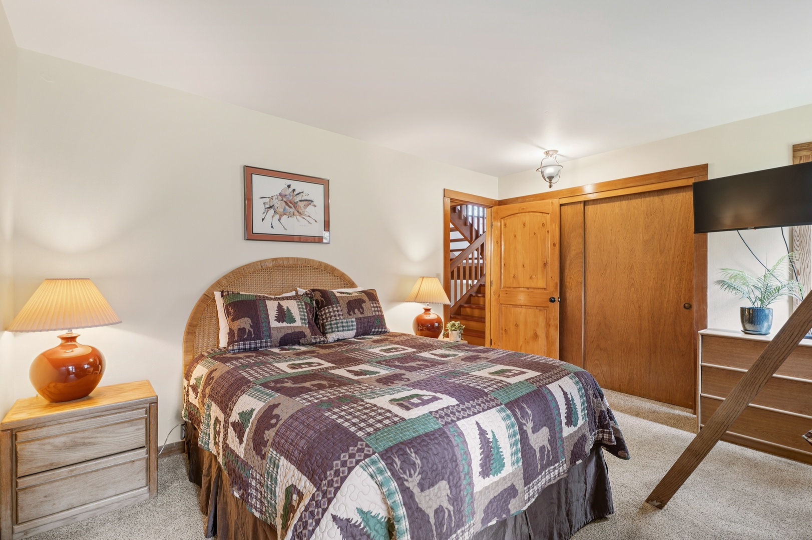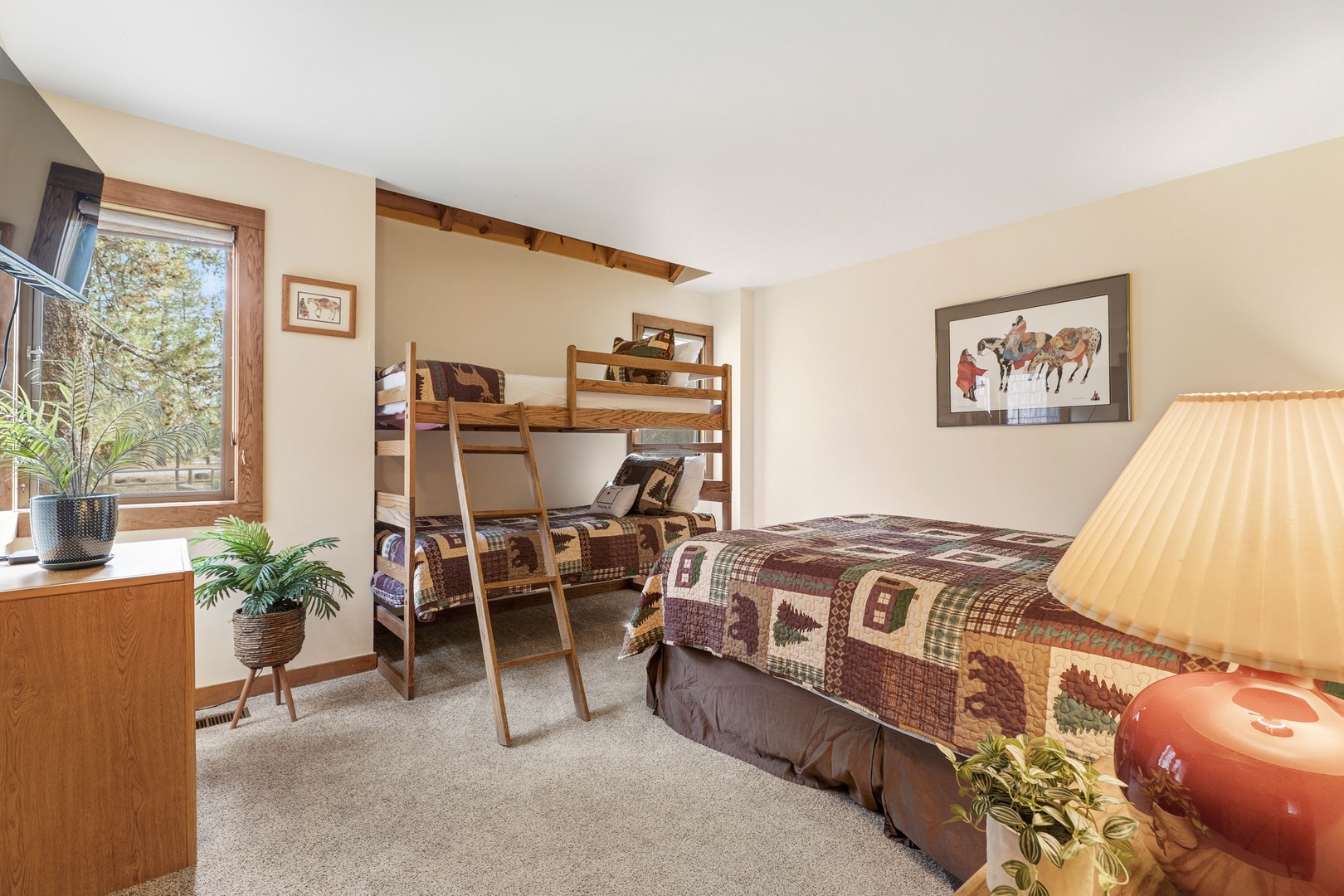 • Additional bedroom with a queen bed, set of bunk beds, and a TV