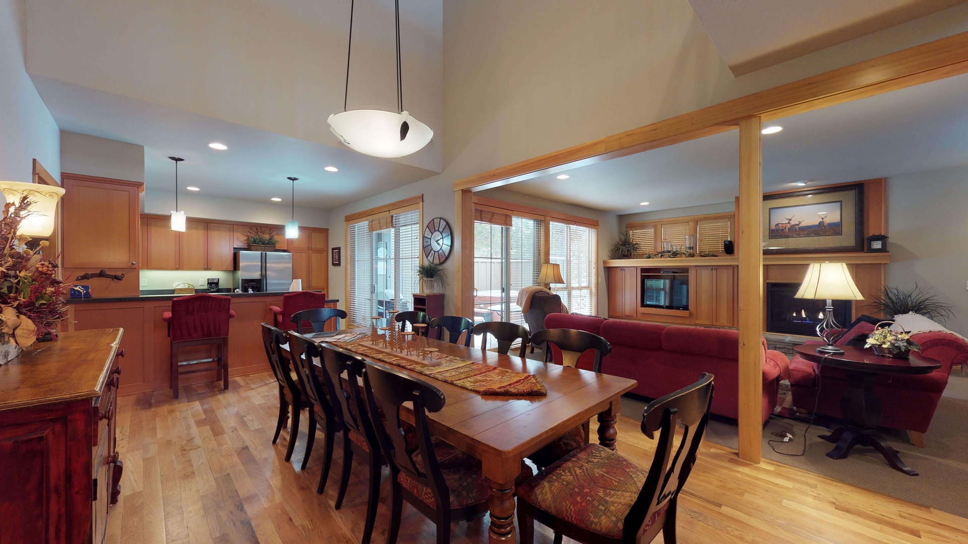 Just steps from Sunriver Village, 16 Fremont Crossing is the perfect basecamp for exploring Sunriver and beyond. This 2,200 sq. ft. home has 3 bedrooms and 3.5 bathrooms making it enjoyable for up to 6 guests. Inside this stylish townhouse you will find spacious kitchen, living, and dining areas with lodge style décor.