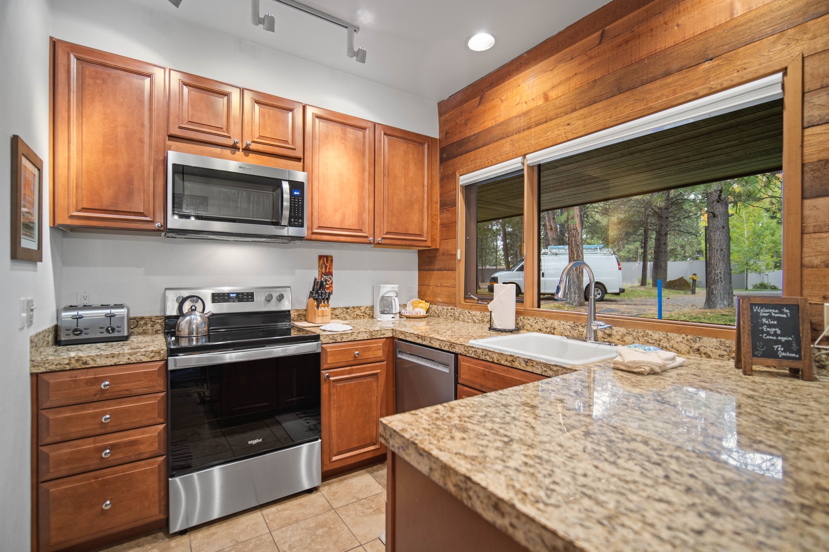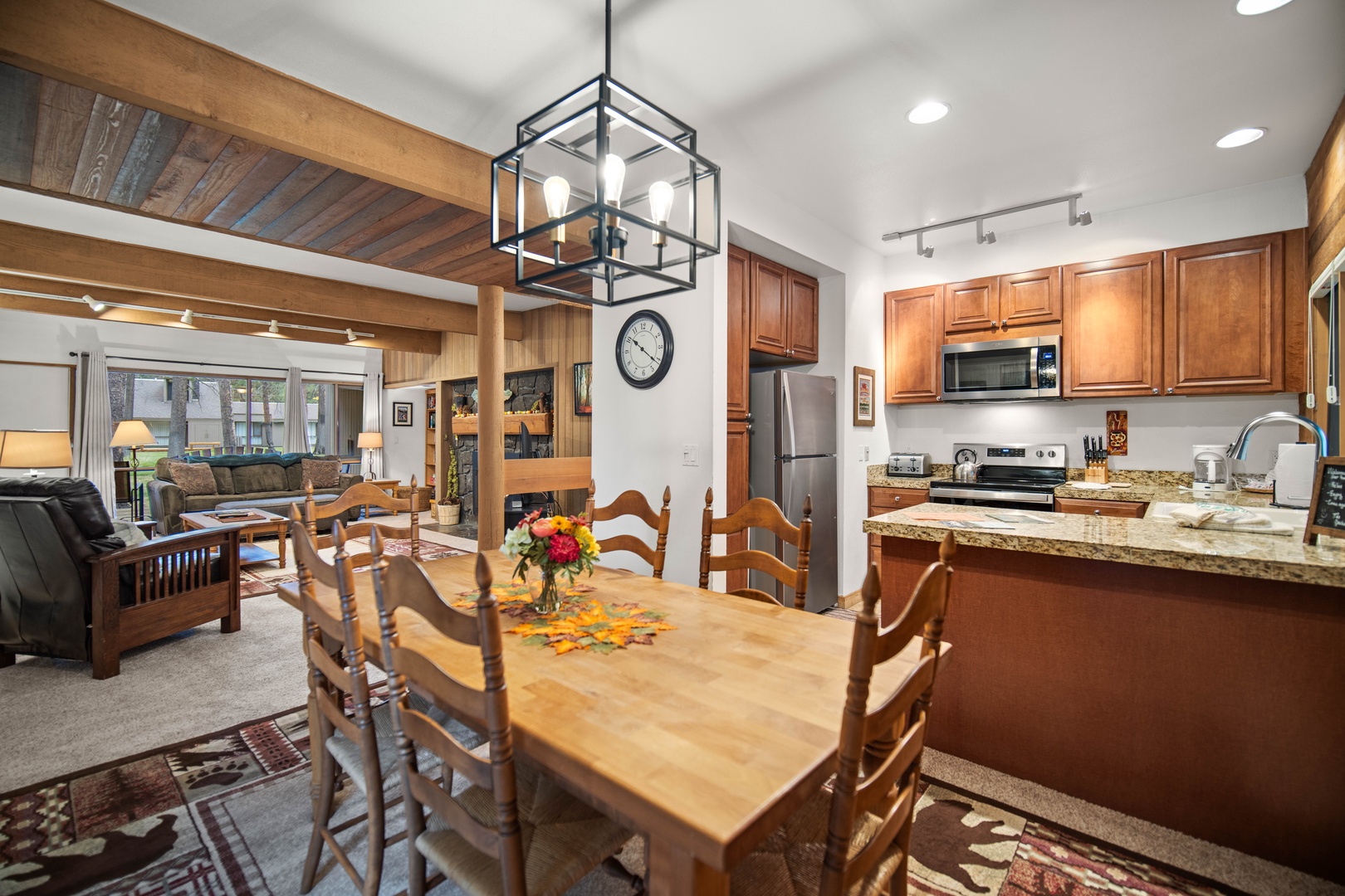Inside this beautifully remodeled condo, you will find a kitchen with all new appliances with granite countertops. A spacious living and dining room, that can comfortably accommodate the whole family, with a gas fireplace to enjoy during the chillier days and nights. Outside, this condo features two separate decks, making it the perfect place to stargaze the bright stars above! One patio offers a gas BBQ and your own private hot tub, to enjoy and soak in after your days of adventuring. The other offers a beautiful wooden bench that overlooks the peaceful meadow.