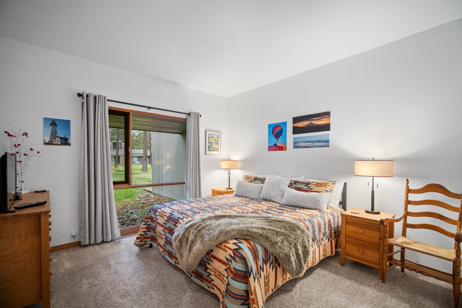 Located right in the heart of Sunriver with easy and quick access to the Village, and the Meadows Golf course, 19 Meadow House is the perfect basecamp for exploring. This 1,388 sq. ft. bottom level condo features 2 bedrooms and 2 baths, with an additional queen size sofa bed in the living room, making it enjoyable for up to 6 guests. Both bedrooms feature a spacious king size bed, and each have their own TV for enjoyment.