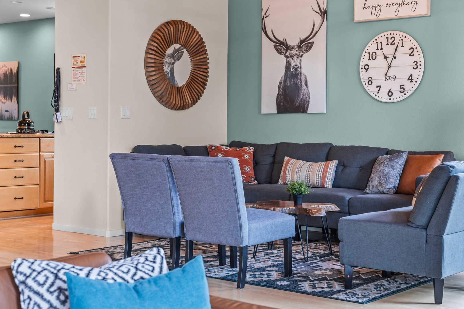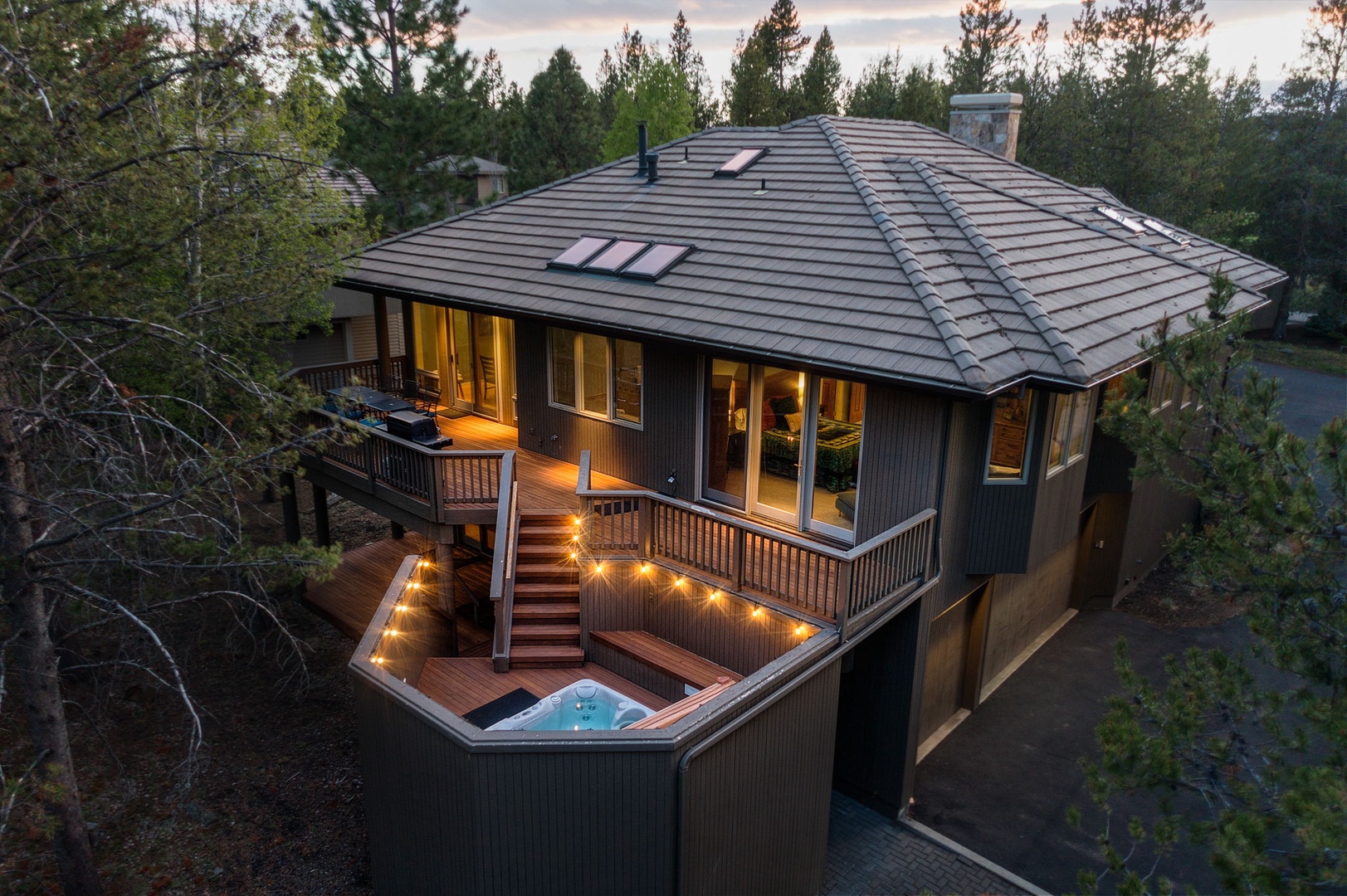 The spacious kitchen opens into a large dining area, perfect for shared meals, morning coffee, or a lively game of cards. Step outside to the expansive decks, where you can fire up the grill, soak in the private hot tub, or enjoy the beautiful colors after a Central Oregon sunset.