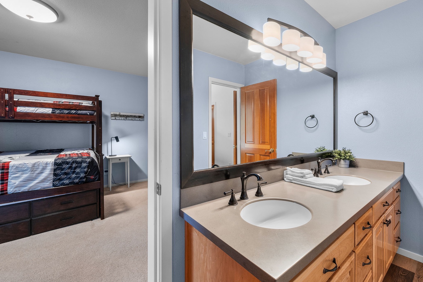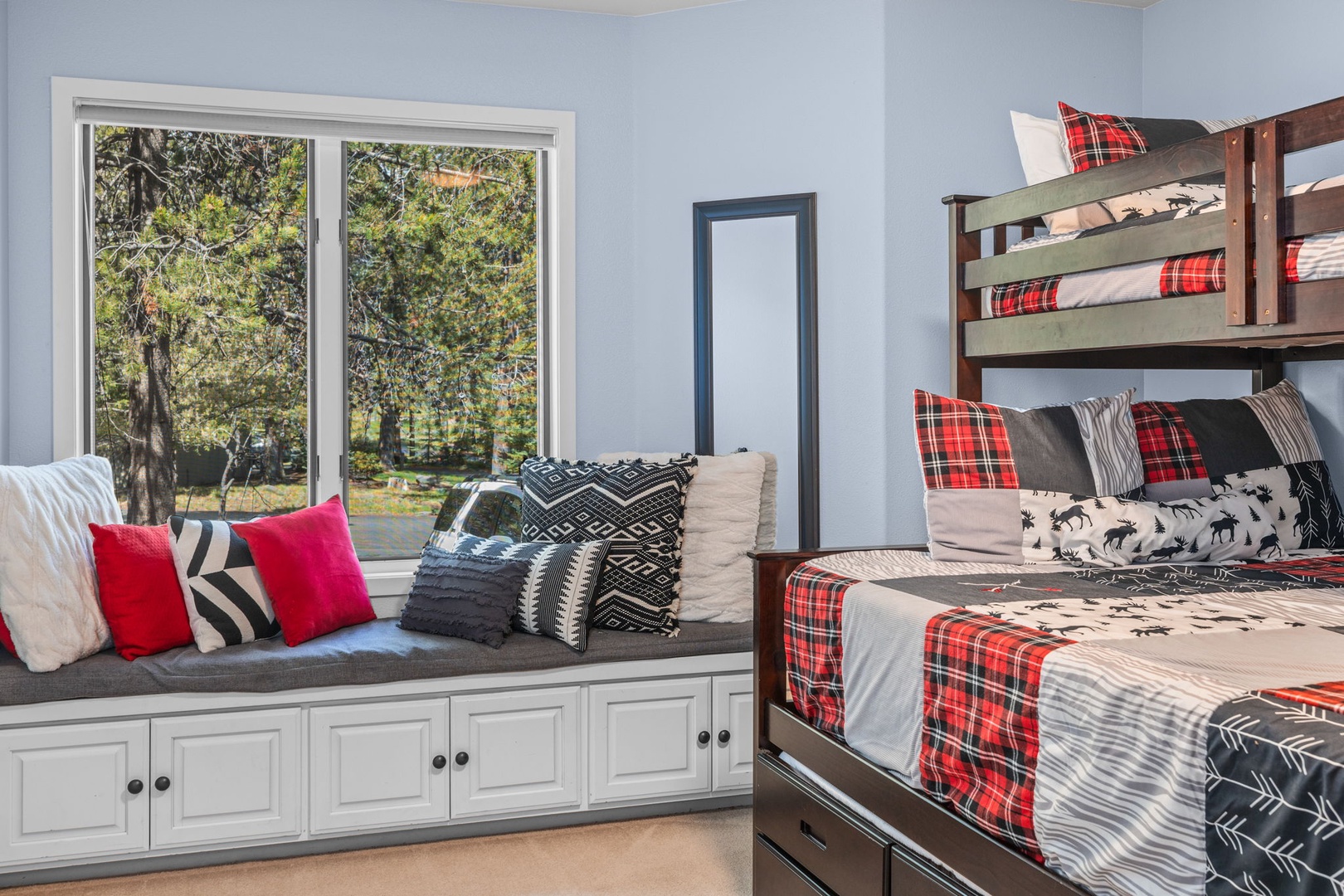 The home features two welcoming living spaces: a bright, open living room and a comfortable family room perfect for reading, playing games, or simply enjoying each other’s company. A gas fireplace adds warmth and ambiance after a long day of skiing or exploring.