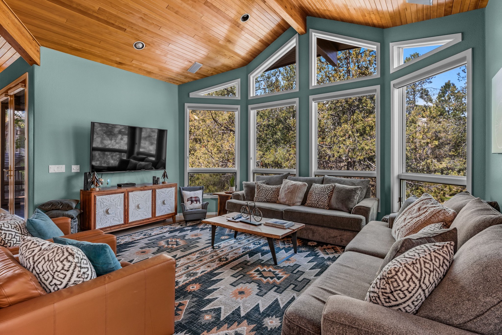 Tucked among the tall pines near the North end of Sunriver, this spacious home blends Southwest charm with the natural beauty of Central Oregon. Perfect for families and groups, this large retreat offers plenty of room to relax, gather, and play.