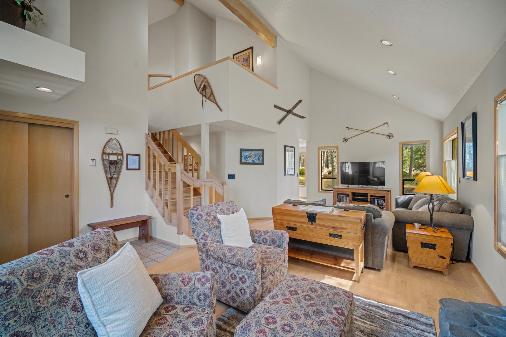 Steps from Sunriver Marketplace this comfortable home at 1 Lassen Lane is the perfect base camp for exploring Sunriver and beyond. This 2,290 sq. ft. 4 bedroom and 3.5 bathrooms rental is enjoyable for up to 8 guests. Inside this comfortable two-story cabin you will find spacious kitchen dining and living room areas. The key features include: