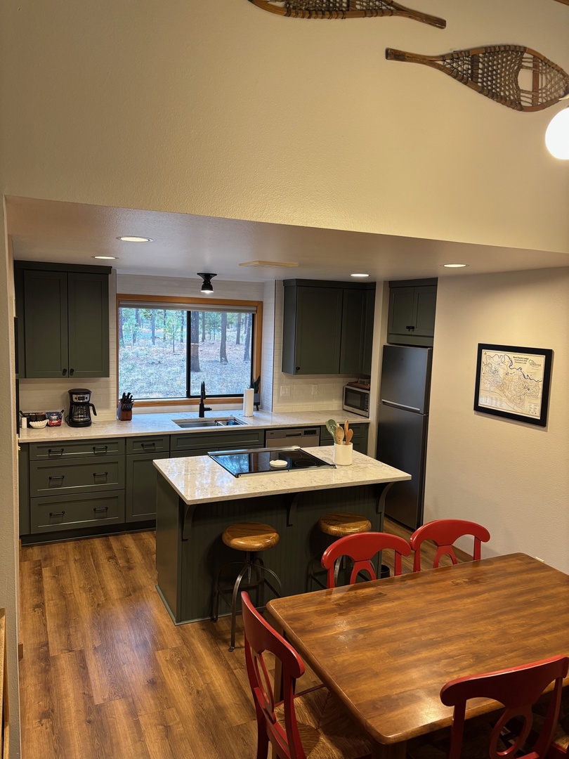 Found in the south end of Sunriver Resort, 2 Central Lane is the perfect basecamp for exploring Sunriver and beyond. This 1,400 sq. ft. two-story home has 2 bedrooms with an open loft, and 2 bathrooms making it enjoyable for up to 6 guests. Inside this cozy home you will find spacious kitchen, living and dining areas with vaulted ceilings.