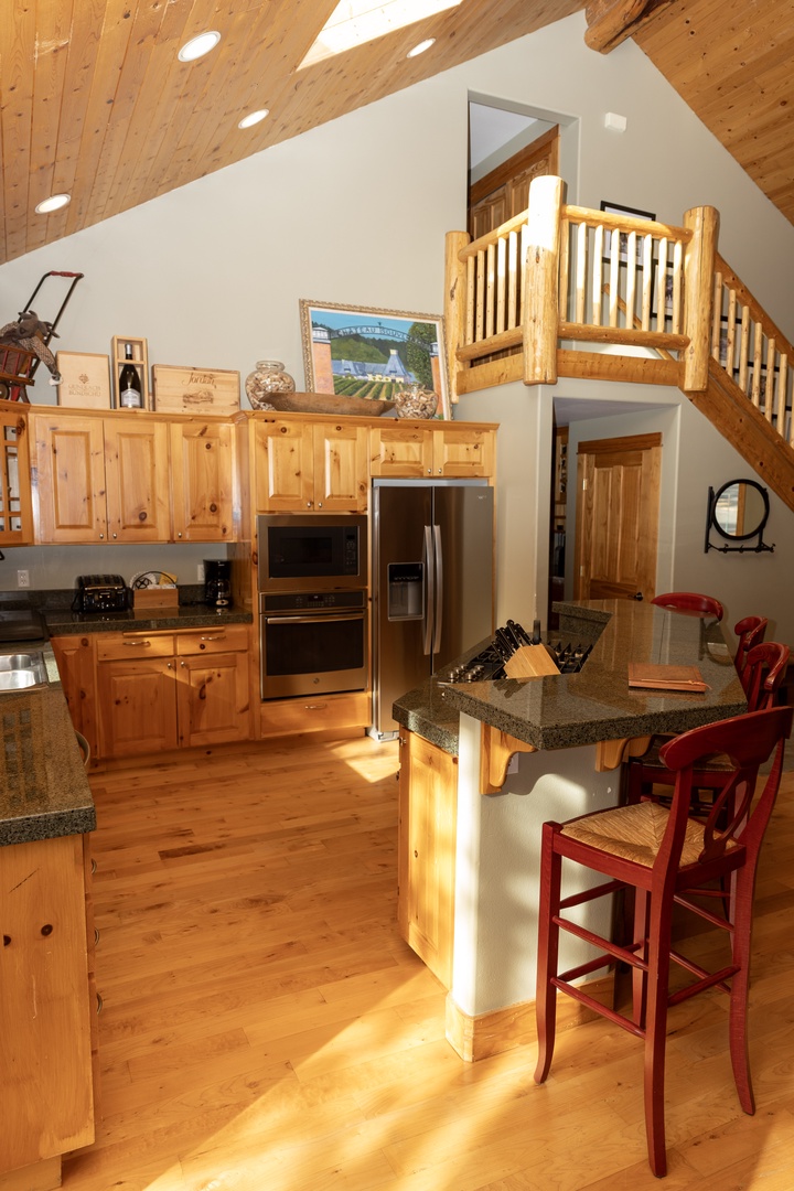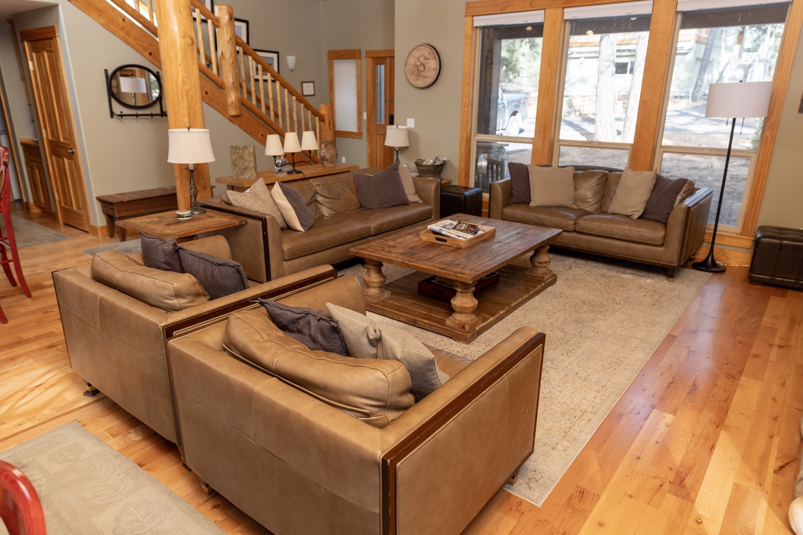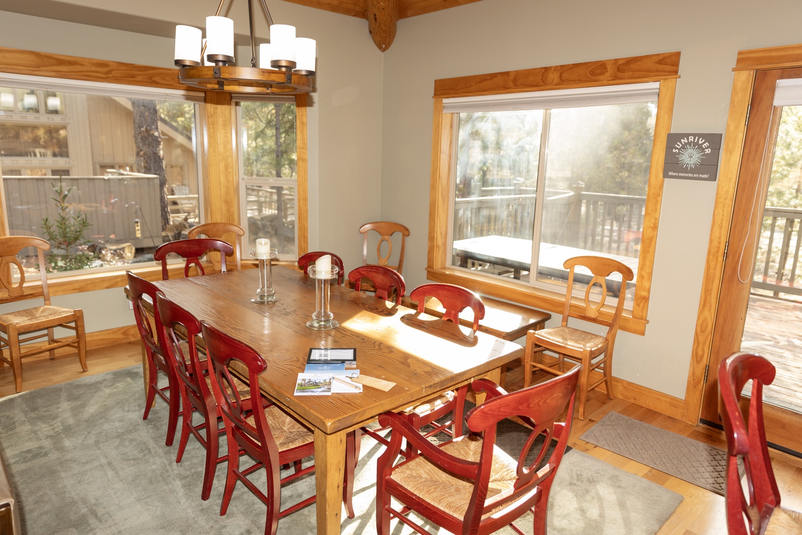 A mountain inspired lodge home, 2 Pineridge Lane is the perfect base camp for exploring Sunriver and beyond. This 2,307 sq. ft. home has 5 bedrooms and 3.5 bathrooms making it enjoyable for up to 12 guests. Inside you will find spacious kitchen, living and dining areas with hardwood floors, vaulted ceilings, wood paneling and log accents.
