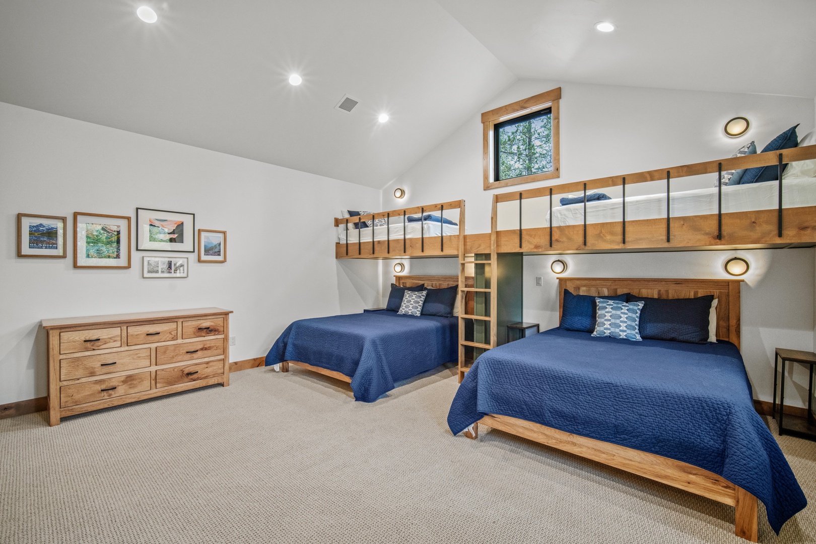 Upstairs, you'll find a delightful built-in bunk room—perfect for kids or guests—which shares a stylish Jack and Jill bathroom with a large bonus room that can serve as a media lounge, playroom, or home office.