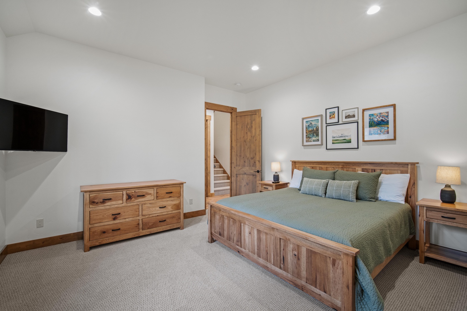 The main floor offers four generously sized bedrooms, each featuring its own private ensuite, ensuring comfort and privacy for all family members or guests. The heart of the home is the expansive great room, where soaring ceilings and a seamless flow into the open, spacious kitchen make it ideal for gatherings and entertaining. Floor-to-ceiling windows flood the space with natural light and offer tranquil views of the surrounding landscape.