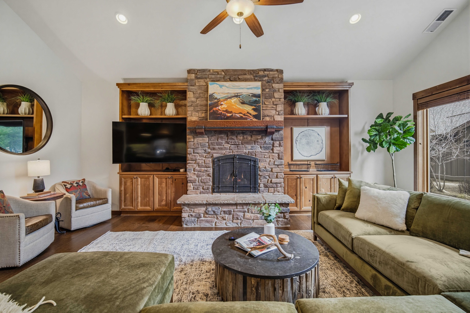 • Updated living room featuring a TV and cozy gas fireplace, ideal for relaxing together after a day of exploring