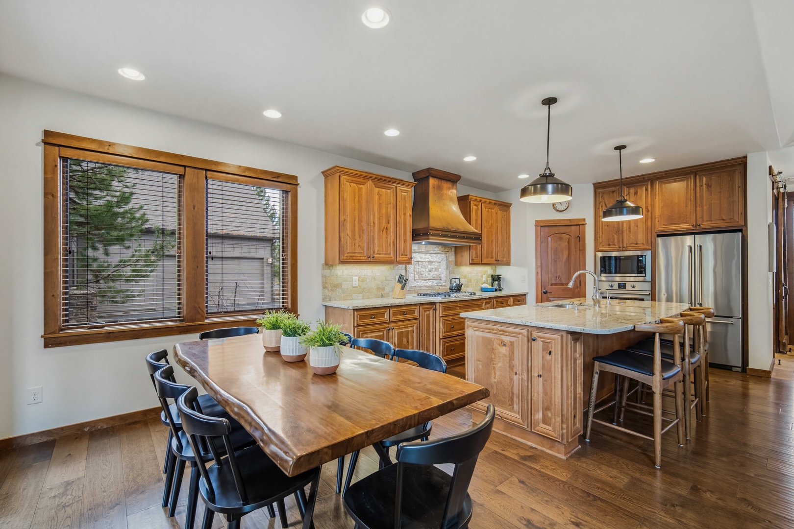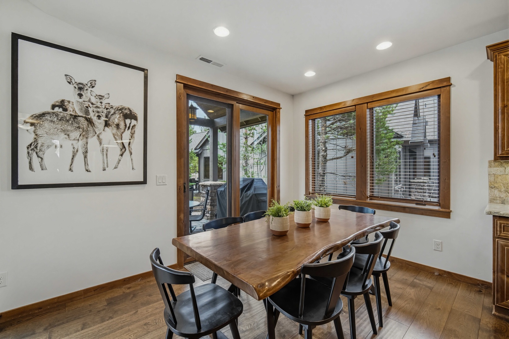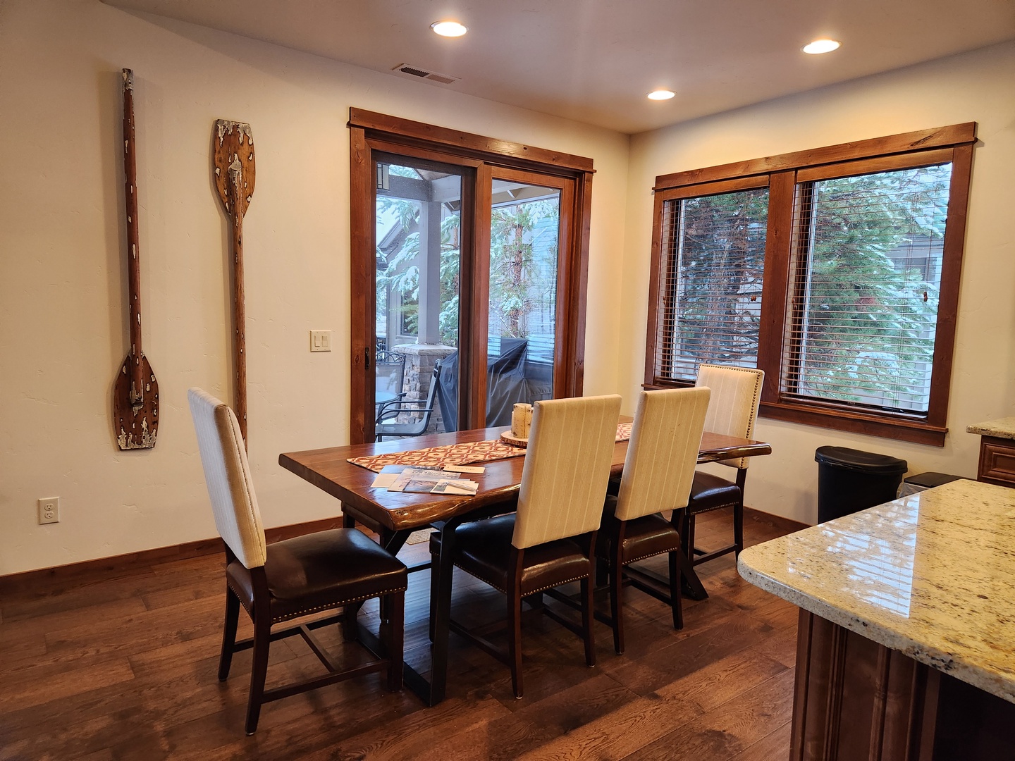 • Live edge dining room table with seating for up to eight with additional seating at kitchen bar