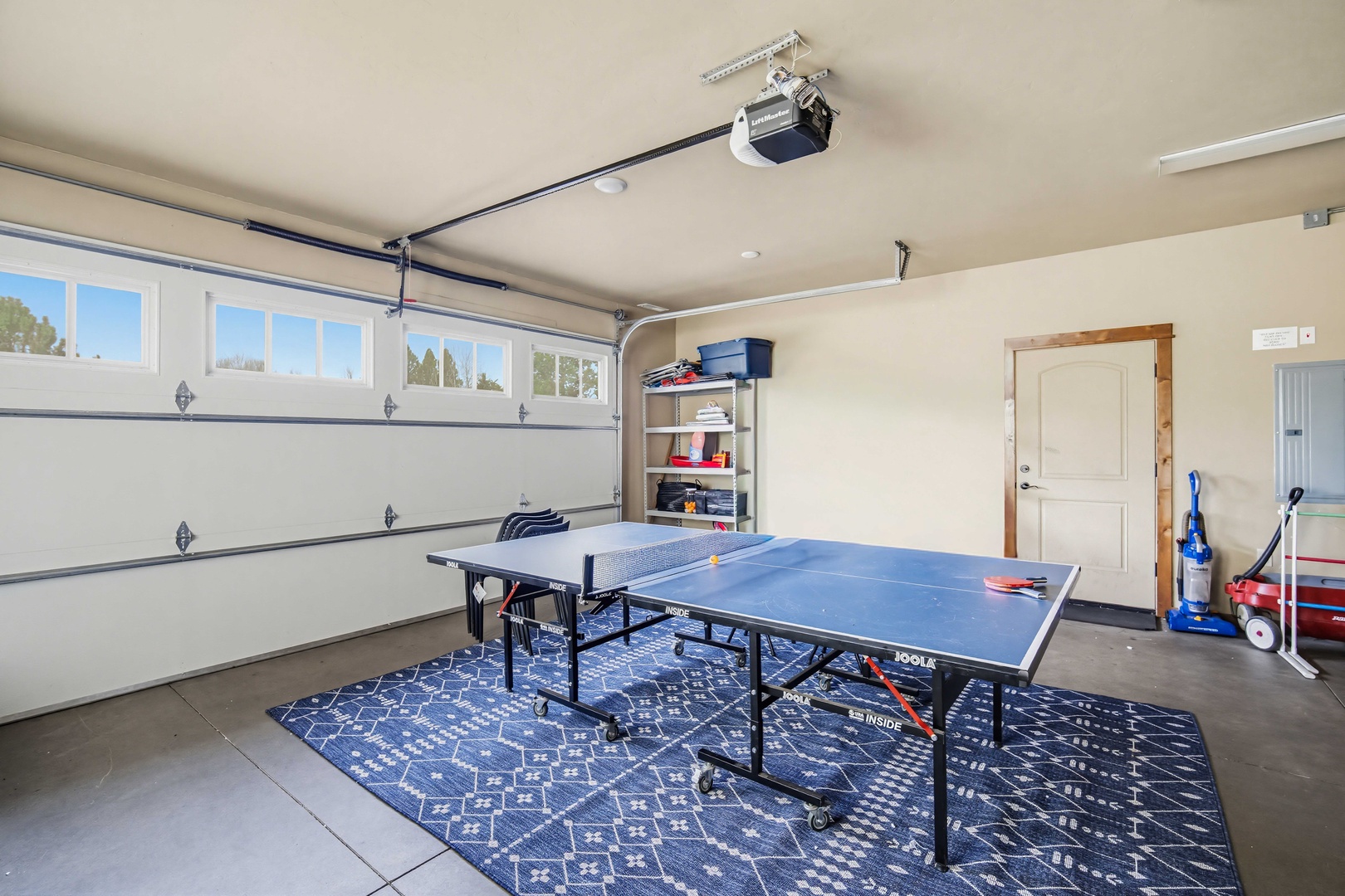 Game-ready garage with ping-pong table and outdoor games for family fun