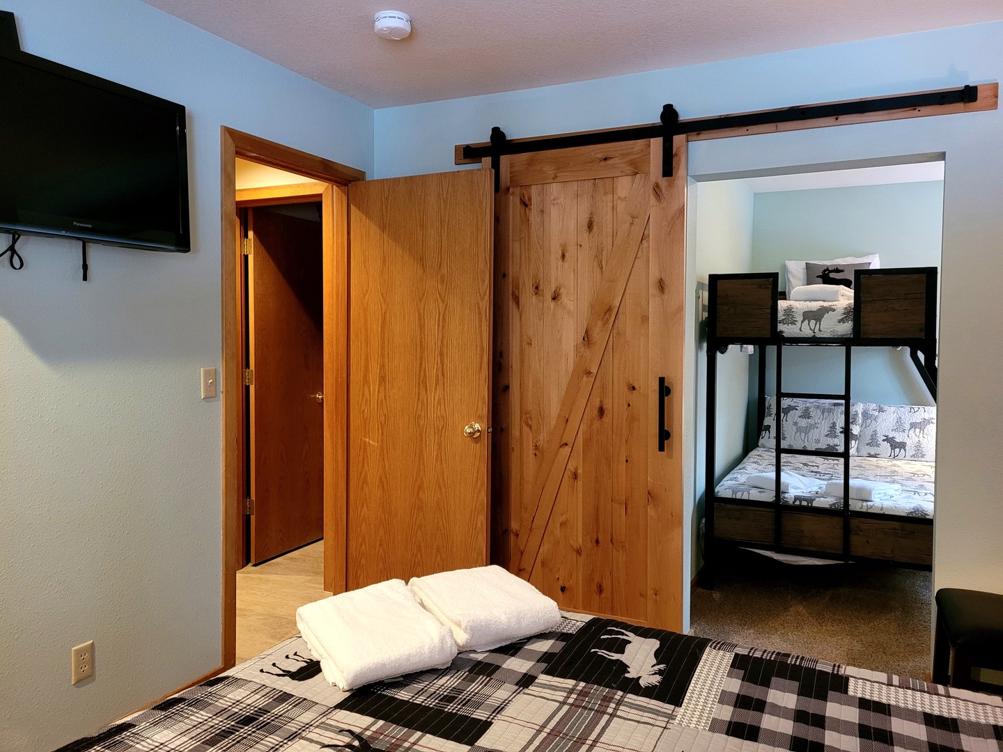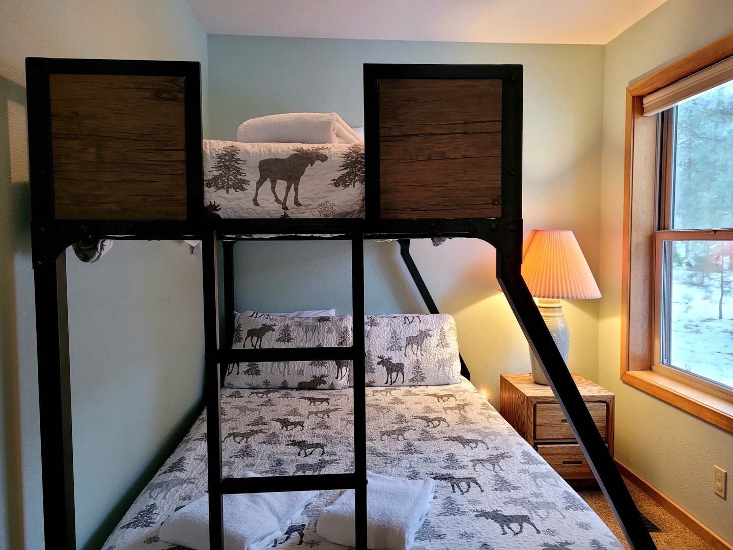 • The third bedroom has a queen bed with a private nook that has a pyramid bunk bed that can sleep up to 3 people