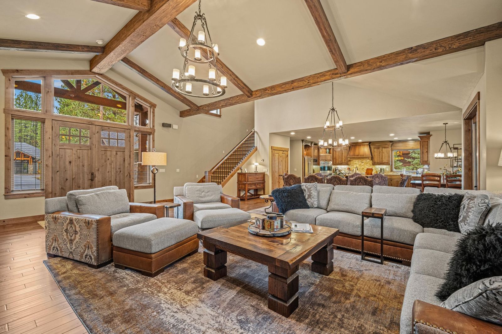 Inside this Northwest inspired luxurious home, you will find spacious kitchen, living and dining areas with vaulted ceilings, wood accents, hardwood floors and large windows. Additional features of this beautiful home include: