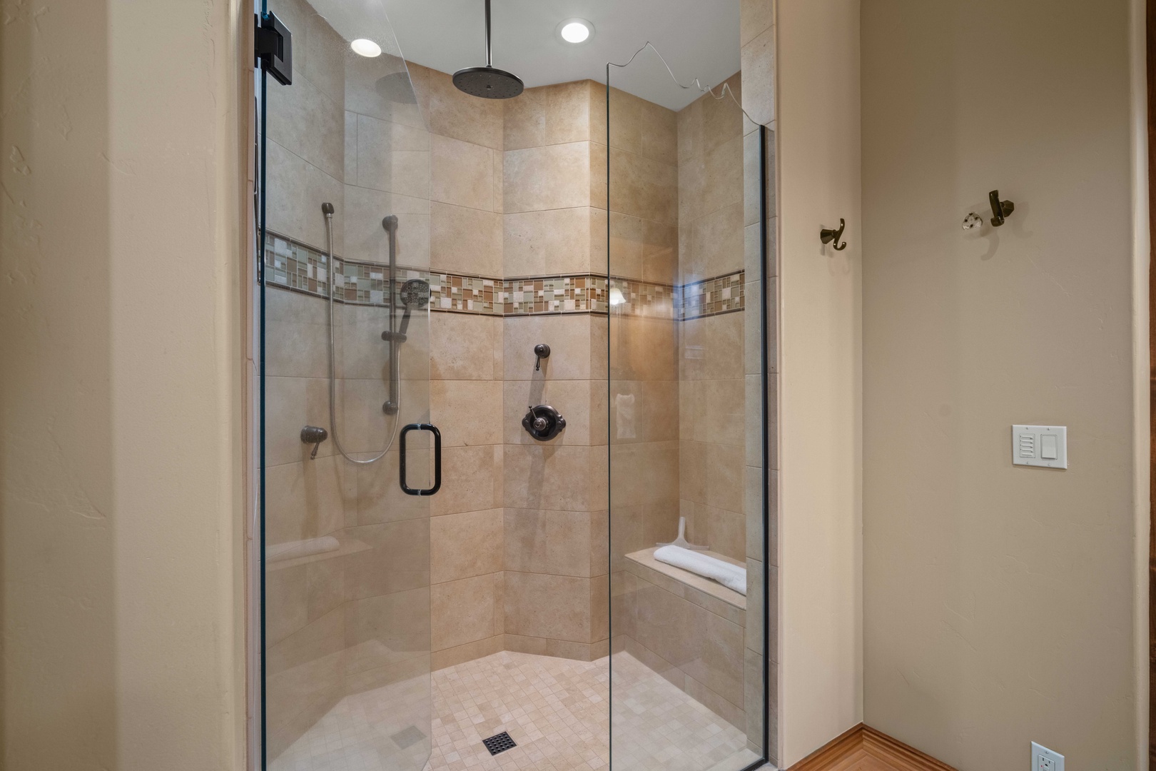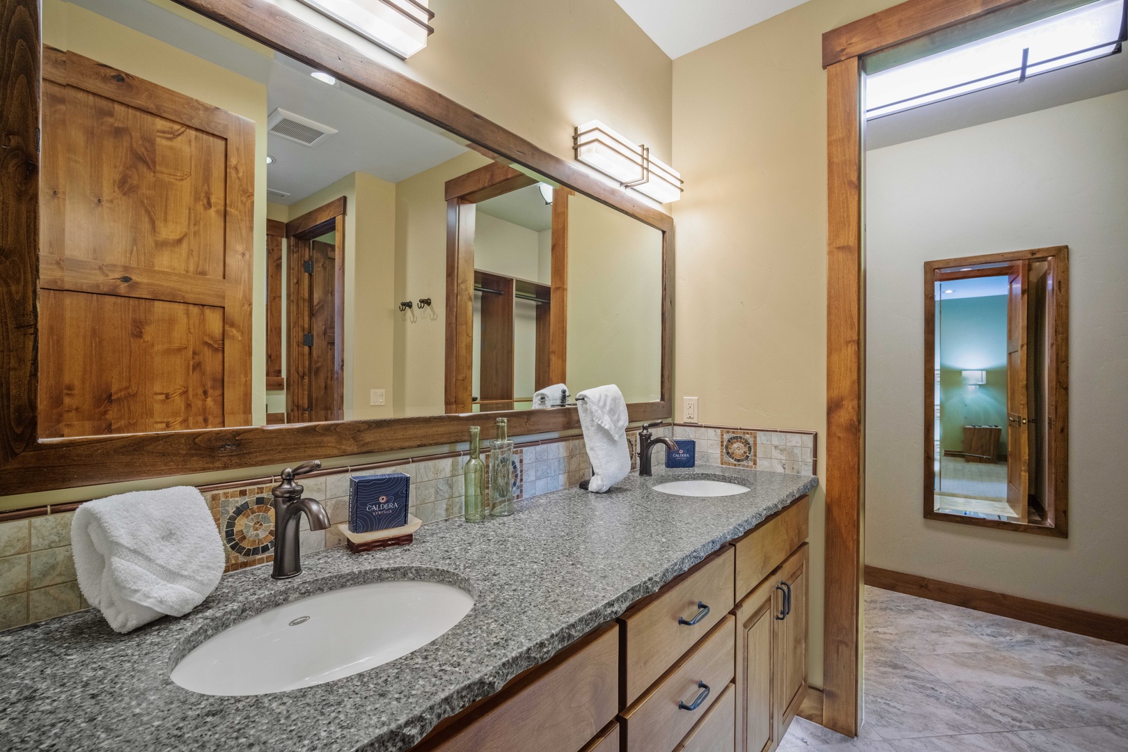• Downstairs Primary Suite boasting a king bed, TV, private access to the patio and lavish bathroom with a large walk-in shower and walk in closet