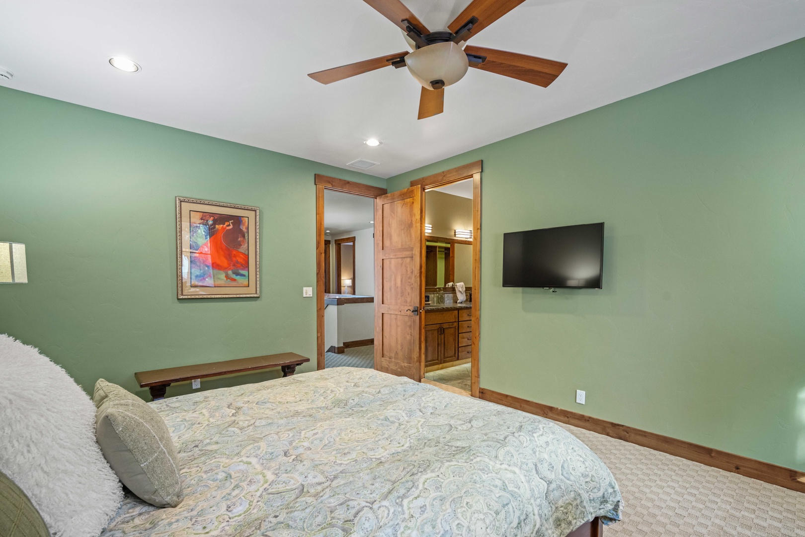 • Downstairs Guest Suite #2 features Queen sized bed, TV, and an attached bathroom