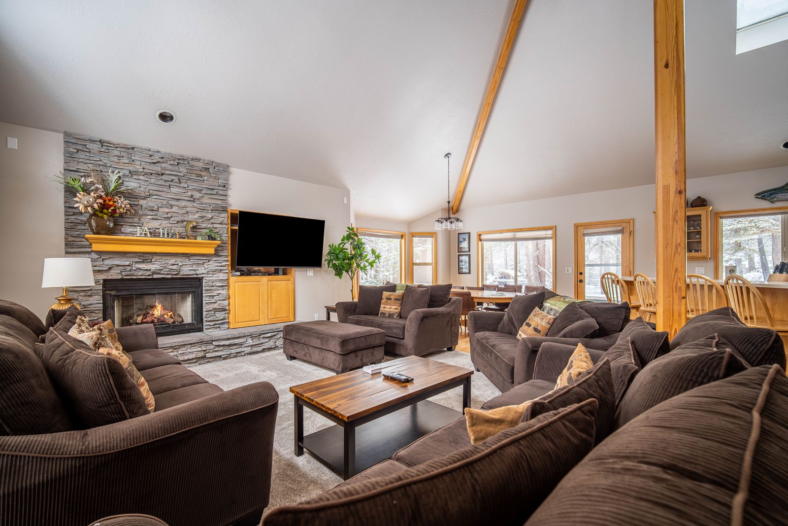A mountain lodge home, 5 Cypress is the perfect basecamp for exploring Sunriver and beyond. This 2,268 sq. ft. home has 5 bedrooms and 3.5 bathrooms making it enjoyable for up to 10 guests. Inside you will find spacious kitchen, living and dining areas with new carpeting, vaulted ceilings and wood and stone accents.
