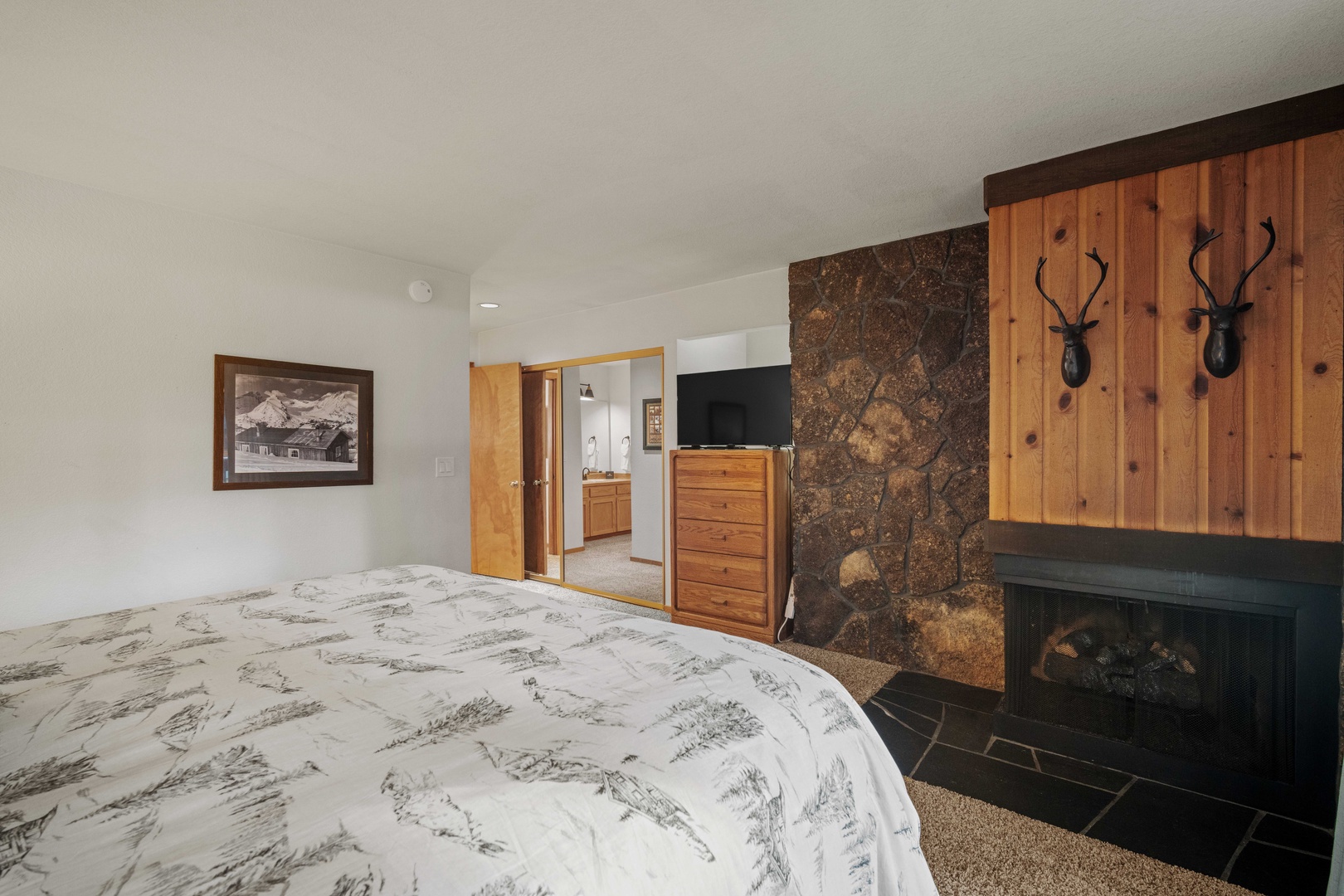 • Master suite with king sized bed, gas fireplace, TV, and attached bathroom