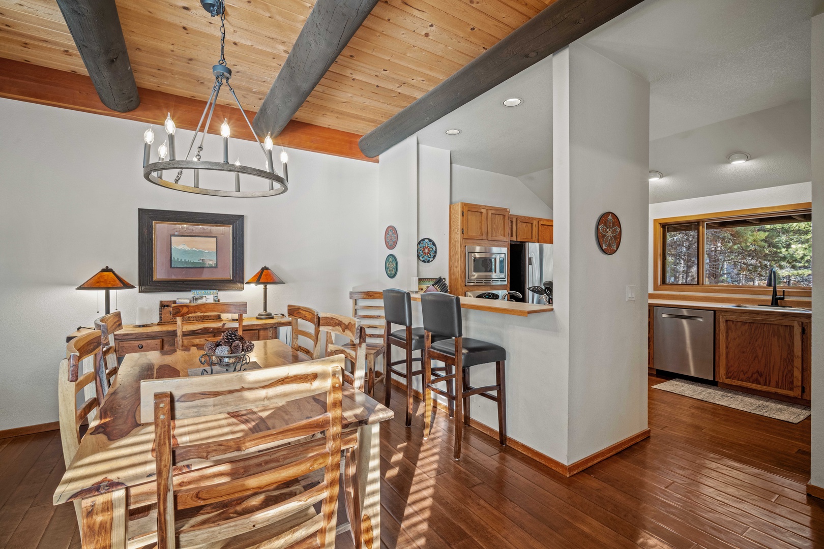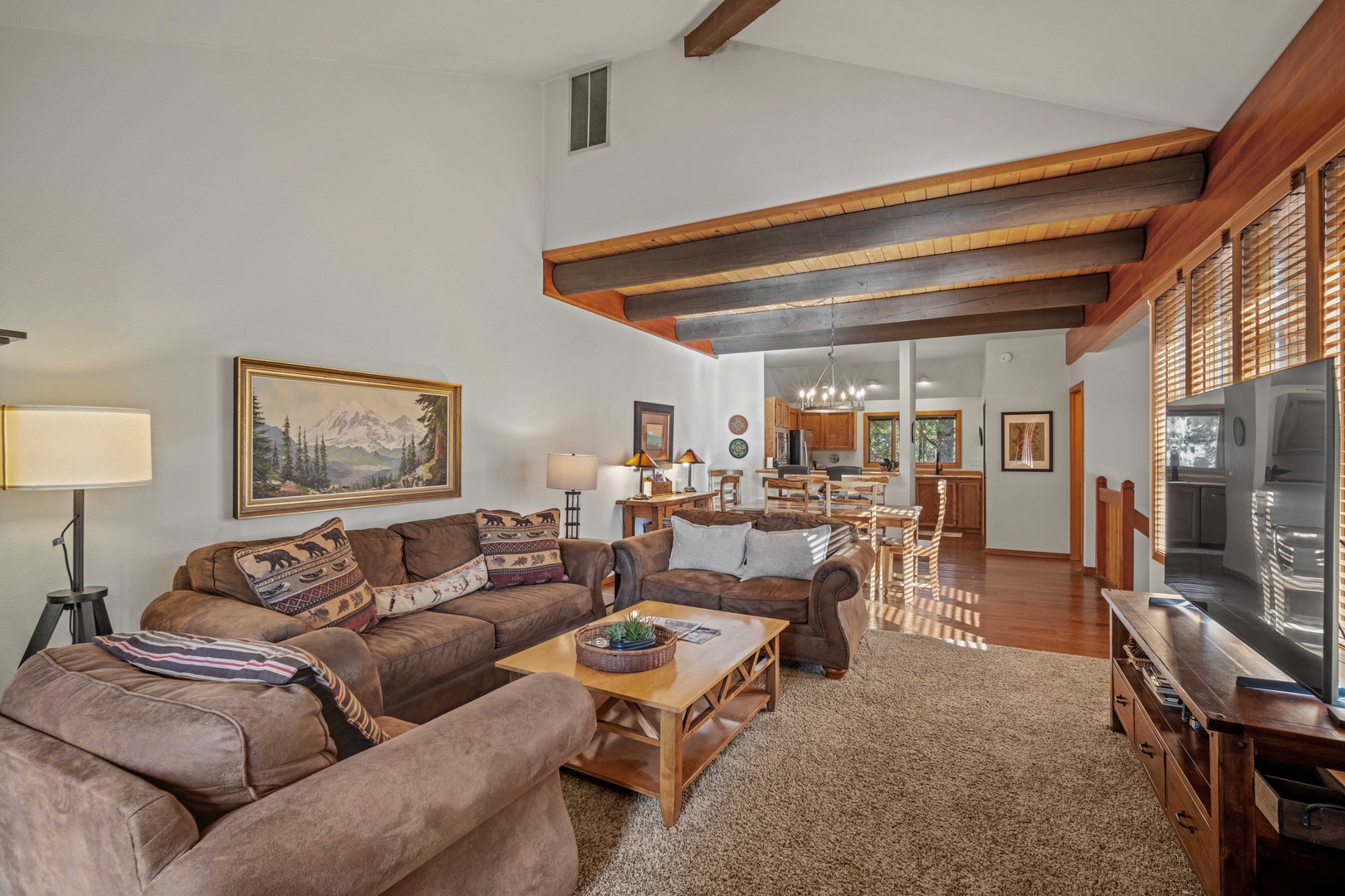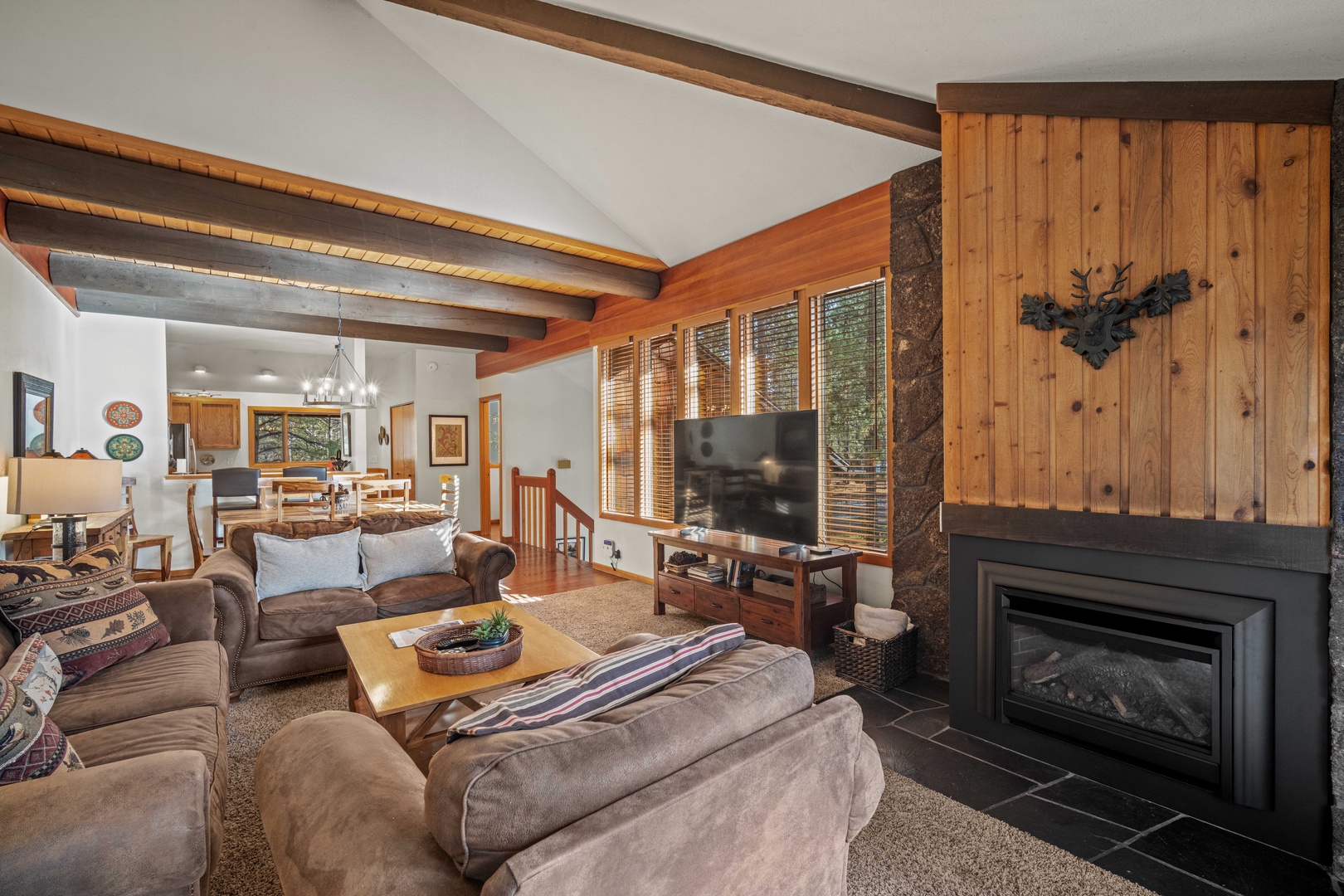 Just steps from Sunriver Resort’s main lodge, 61 Wildflower is the perfect basecamp for exploring Sunriver and beyond. This cozy 1,541 sq. ft. home has 2 bedrooms and 2.5 bathrooms making it enjoyable for up to 4 guests. Inside this two level lodge style condo you will find spacious kitchen, living, and dining areas.