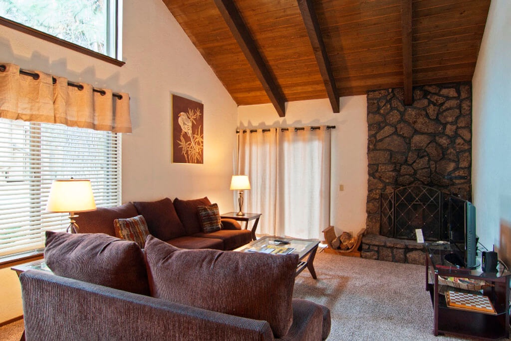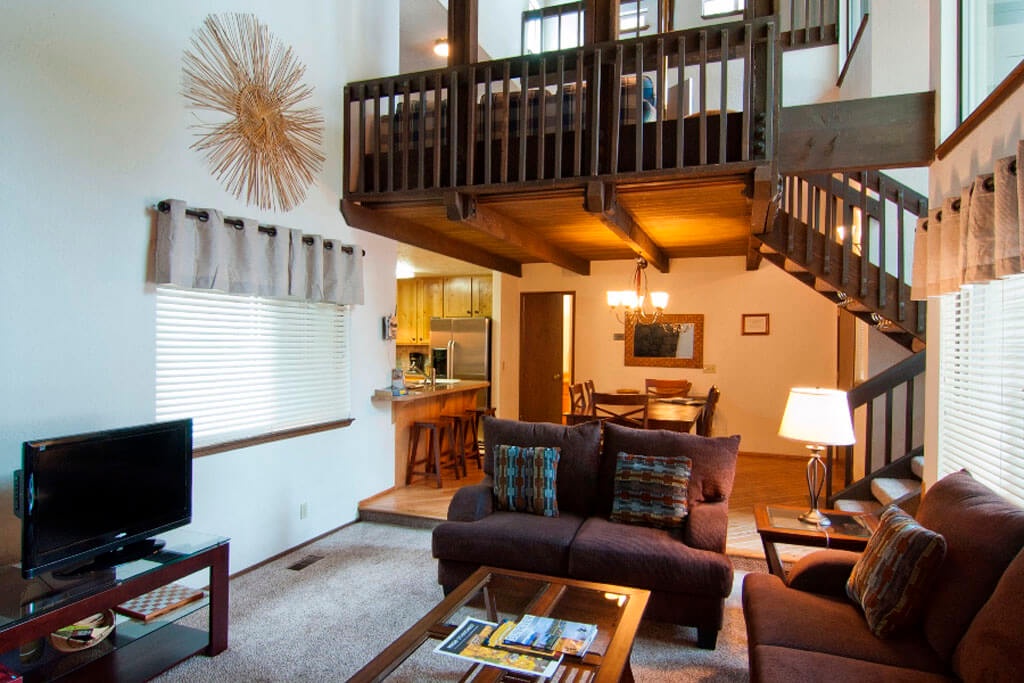 Just steps from The Spa at Sunriver Resort, 62 Tennis Village is the perfect basecamp for exploring Sunriver and beyond. This 1,580 sq. ft. home is enjoyable for up to 8 guests with its 2 bedrooms and 2 bathrooms. Inside this lodge-style condo you will find spacious kitchen, living, and dining areas with vaulted ceilings wood paneling, and beam accents.