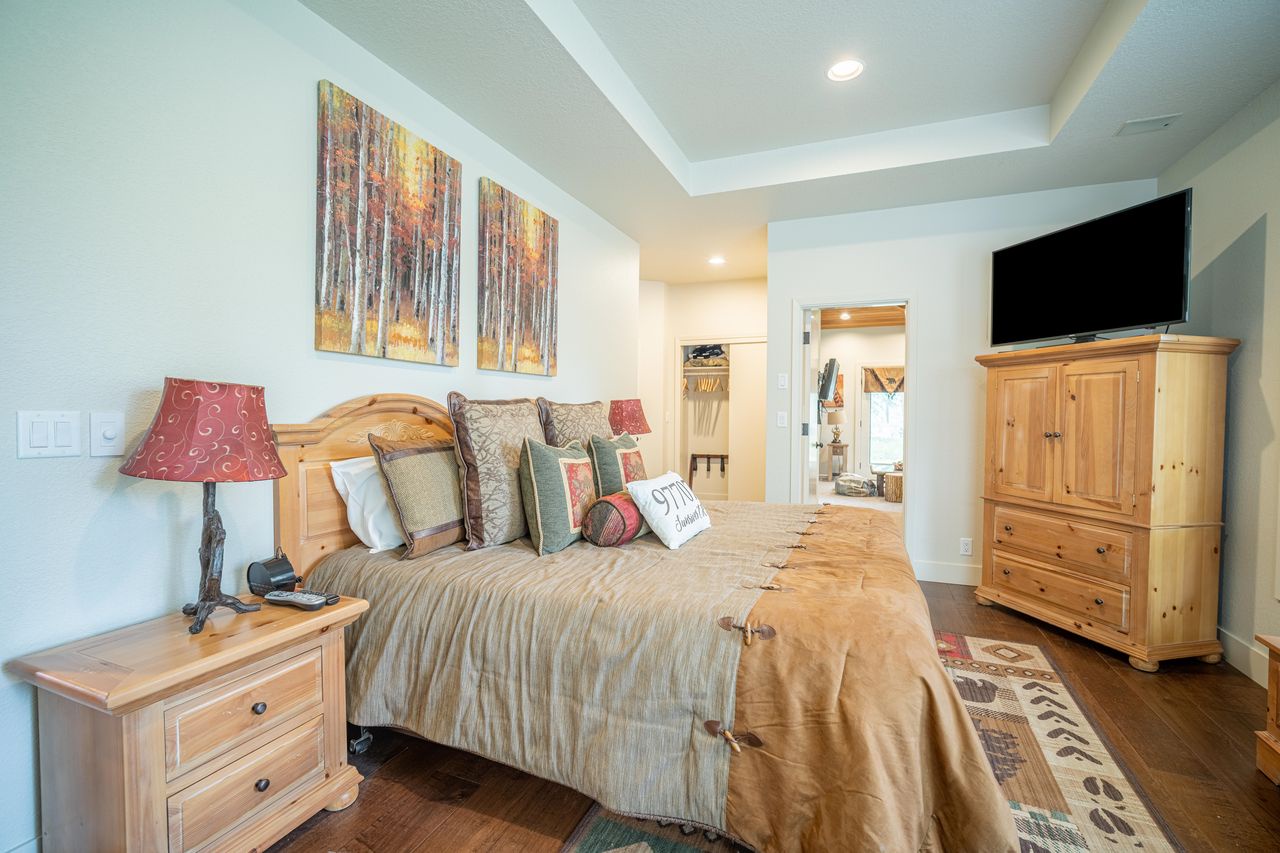 • Master suite complete with a king bed, TV / DVD player, walk-in closet, private bathroom with tile shower and large soaking tub, and direct hot tub access and stunning views