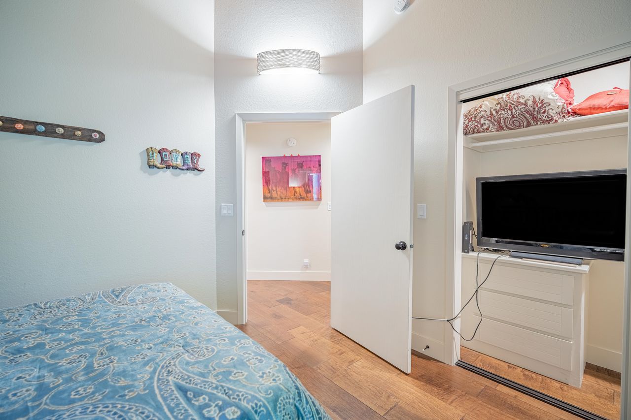• Additional master bedroom featuring a king bed and private bathroom with large soaking tub and tile shower. This bedroom leads to an additional room with a bunk bed, double bed, TV and access to shared bathroom