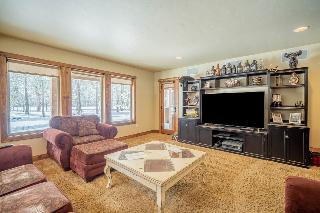 • Downstairs bonus theater room complete with comfortable seating, direct access to hot tub, large TV, DVD player and stereo for the optimal TV viewing experience