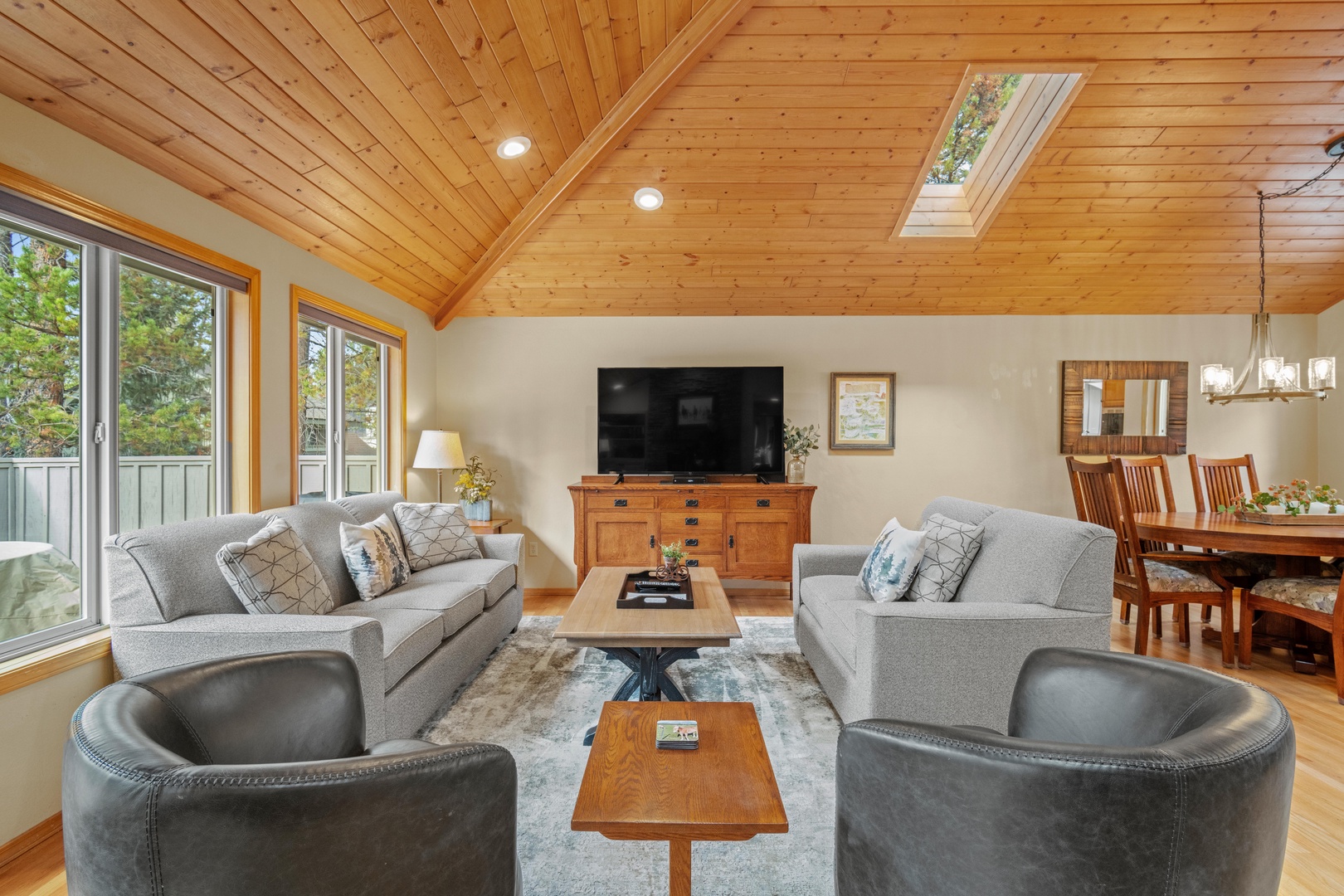 An inviting, verdant backyard awaits your arrival at 8 Shagbark Lane. Nestled just a few blocks from Sunriver Marketplace, this cozy residence serves as an ideal hub for both summer and winter adventures. The property boasts an array of outdoor games and activities, from cornhole matches to thrilling Sunriver biking escapades. With its 2102 sq. ft., 4 bedrooms, and 3.5 bathrooms, this rental accommodates up to 10 guests.