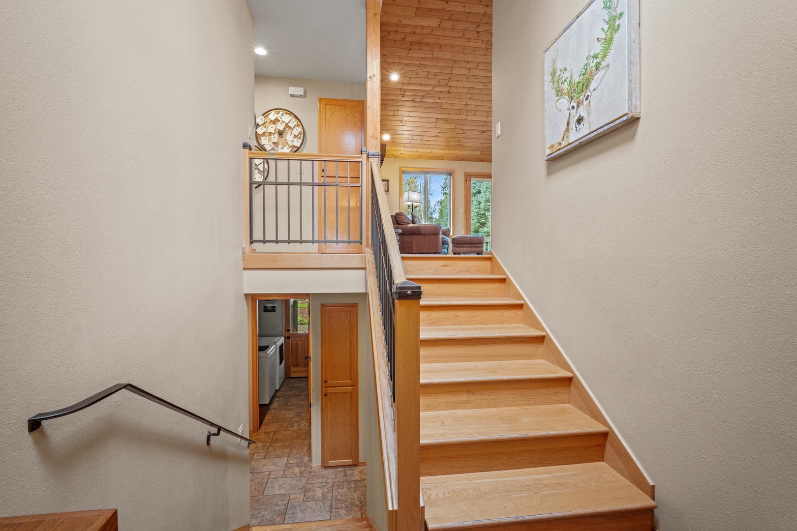 • Upstairs, a primary king suite with an ensuite bathroom and TV.