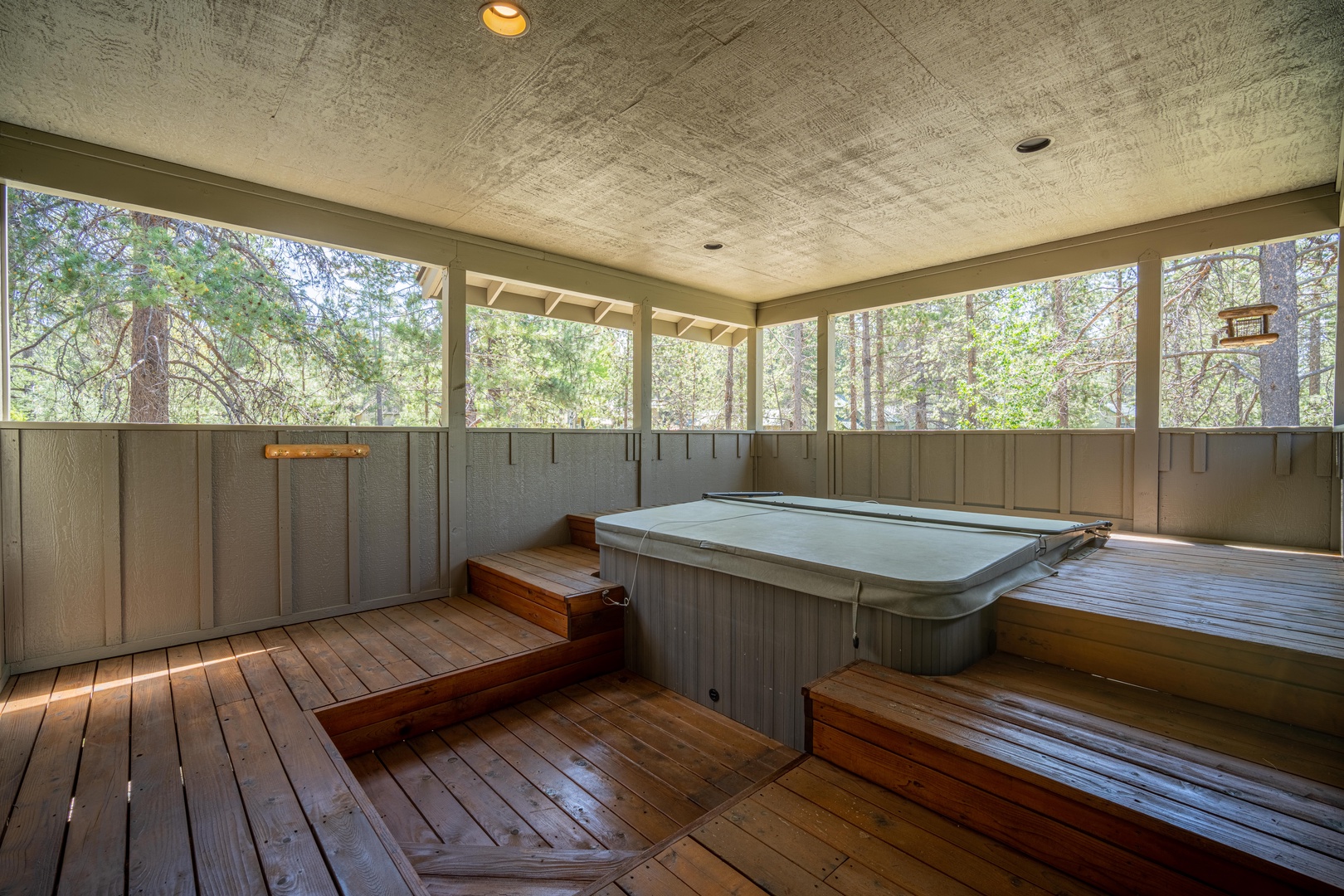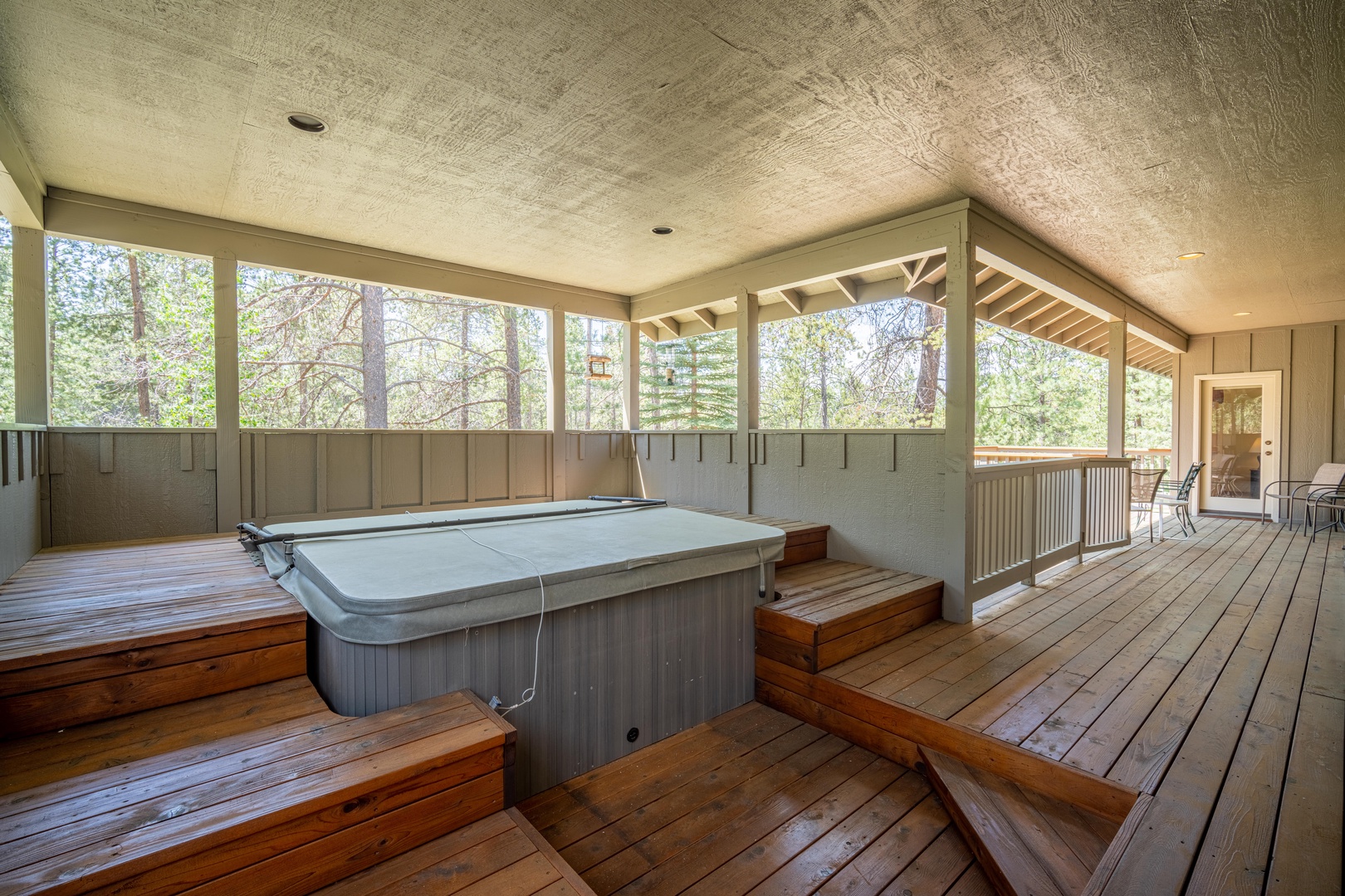• New hot tub is private, covered and lighted – immaculate and ideal for year-around use