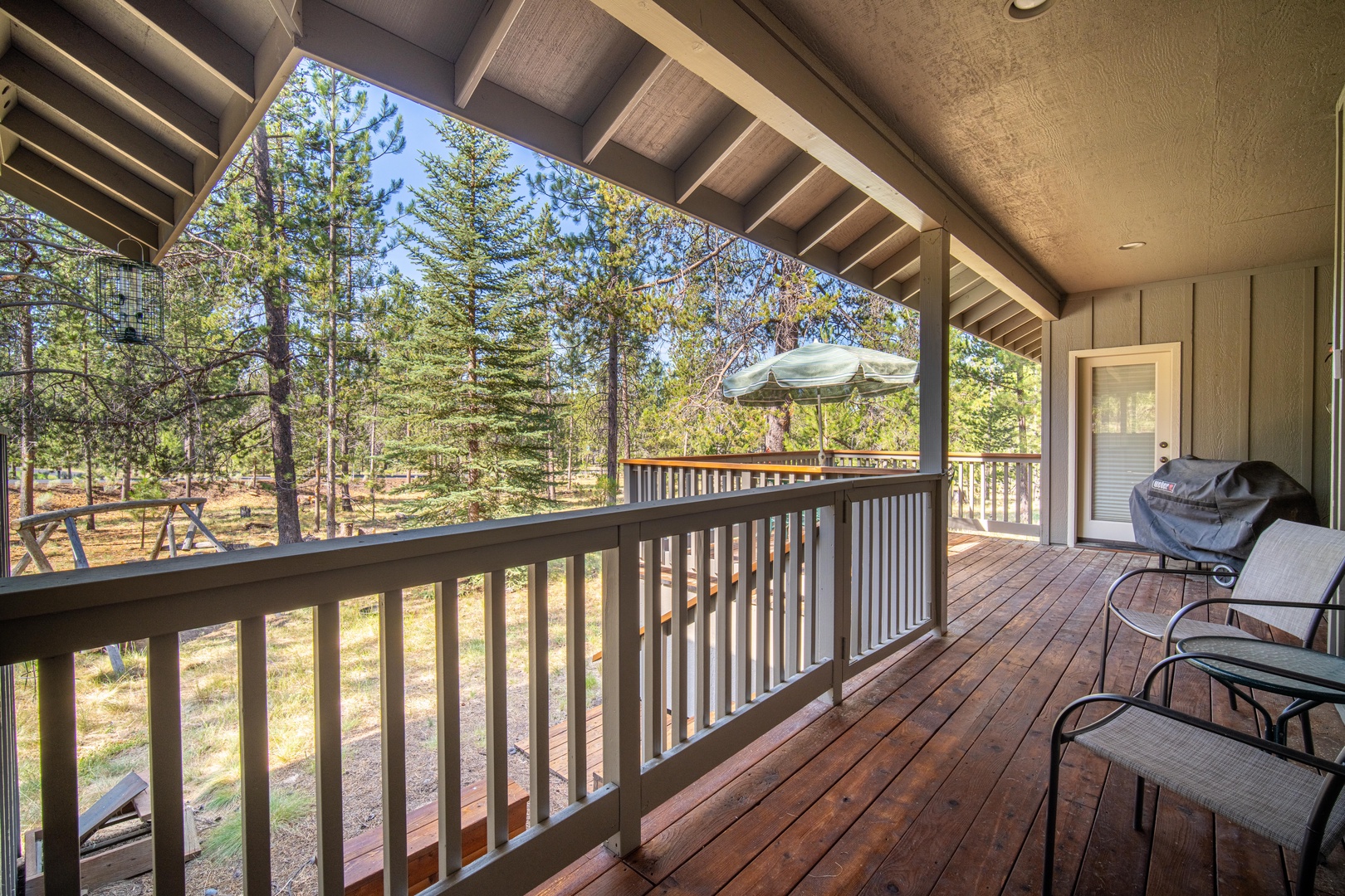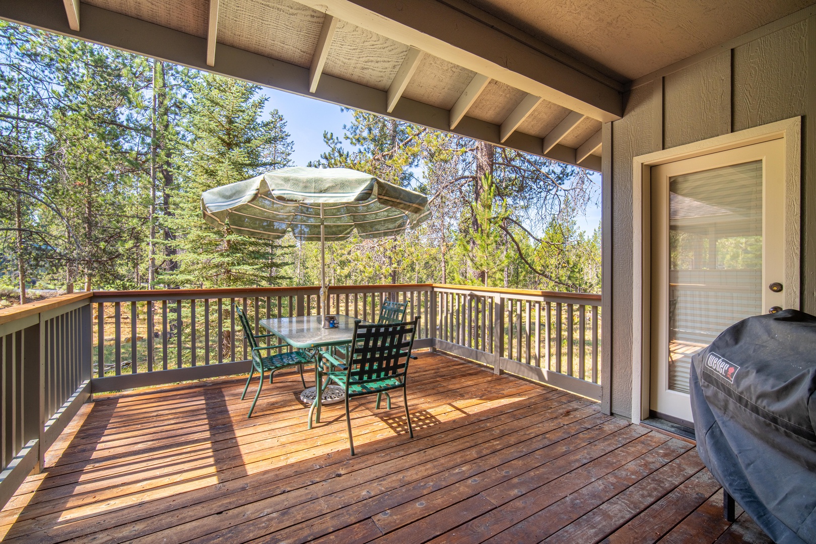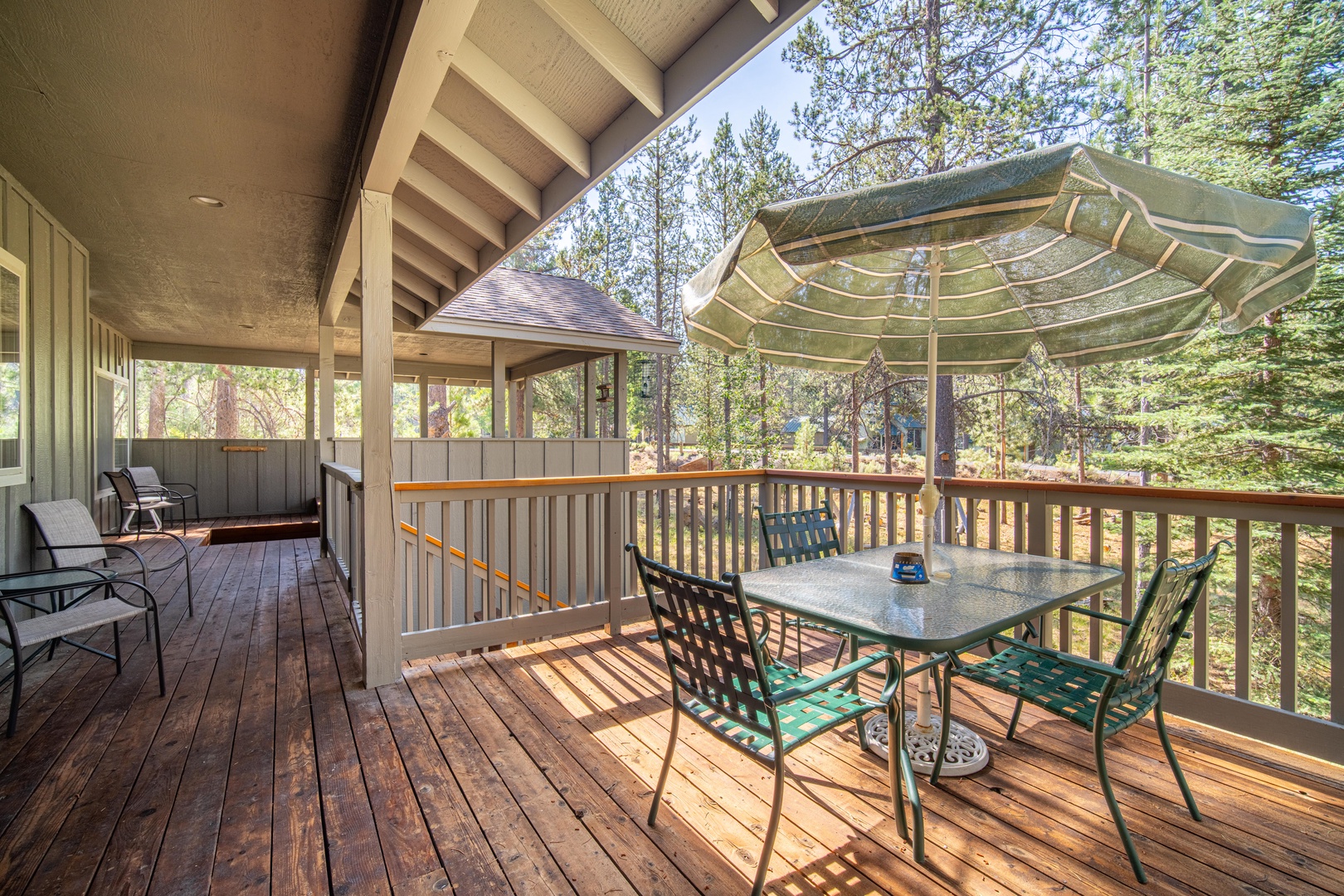 • Large outdoor deck features covered hot tub & gas BBQ in addition to table seating for 8 among the pine trees