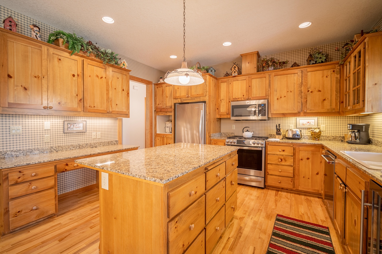 • Large, fully-stocked kitchen features a gas cooktop, new refrigerator and new Keurig coffee maker